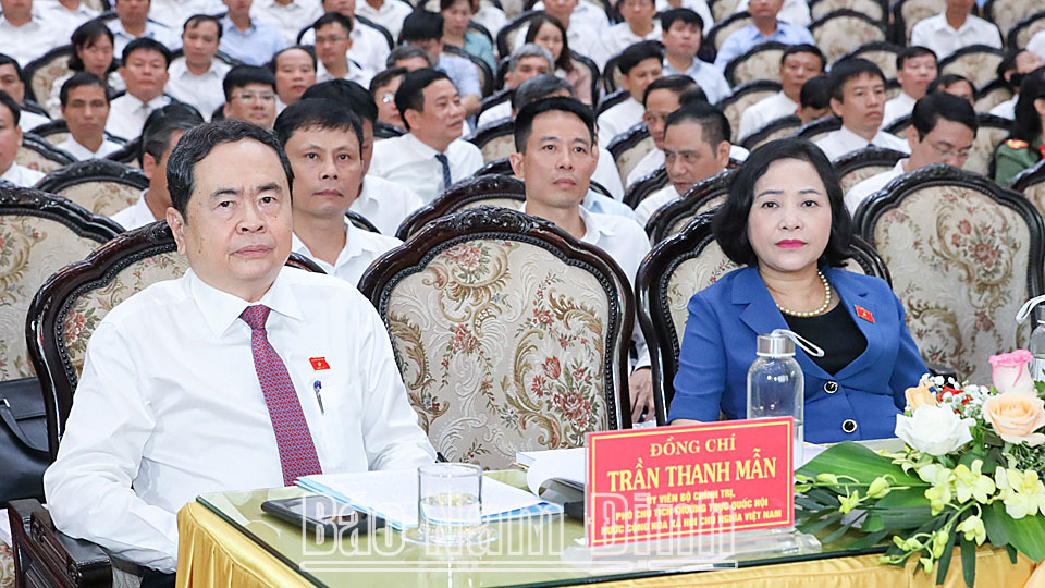 Phát biểu chỉ đạo hội nghị, thay mặt Ủy ban Thường vụ Quốc hội, đồng chí Phó Chủ tịch Thường trực Quốc hội Trần Thanh Mẫn ghi nhận, đánh giá cao và biểu dương về tinh thần trách nhiệm, ý chí quyết tâm, chủ động, sáng tạo, hiệu quả trong công tác lãnh đạo, chỉ đạo của BCH Đảng bộ tỉnh và những kết quả mà HĐND, UBND, Ủy ban MTTQ các cấp, các sở, ngành, địa phương của tỉnh Nam Định đã đạt được trong thời gian vừa qua. Đồng thời đề nghị các cấp, các ngành của tỉnh tiếp tục tập trung triển khai có hiệu quả Nghị quyết Đại hội lần thứ XIII của Đảng, Nghị quyết Đại hội Đảng bộ lần thứ XX của tỉnh, Nghị quyết số 30 của Bộ Chính trị về phát triển kinh tế - xã hội và đảm bảo quốc phòng - an ninh vùng đồng bằng Sông Hồng đến năm 2030, tầm nhìn đến năm 2045. Tăng cường hơn nữa công tác xây dựng Đảng, nâng cao chất lượng công tác xây dựng bộ máy tổ chức và cán bộ. Tiếp tục phát huy ưu thế của tỉnh về sản xuất nông nghiệp và tiềm năng, thế mạnh kinh tế biển; ứng dụng mạnh mẽ khoa học - công nghệ, đổi mới sáng tạo. Nâng cao chất lượng xây dựng nông thôn mới nâng cao, kiểu mẫu, gắn với giữ gìn phát huy bản sắc văn hóa dân tộc và bảo tồn không gian kiến trúc văn hóa làng xã truyền thống. Tập trung khai thác huy động và sử dụng hiệu quả mọi nguồn lực để đầu tư xây dựng kết cấu hạ tầng kinh tế - xã hội, góp phần thu hút đầu tư và phát triển kinh tế - xã hội. Duy trì, nằm trong tốp dẫn đầu toàn quốc về chất lượng giáo dục, thúc đẩy đào tạo và phát triển nguồn nhân lực chất lượng cao đáp ứng nhu cầu thị trường lao động và hội nhập quốc tế.