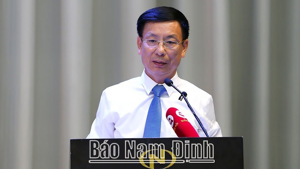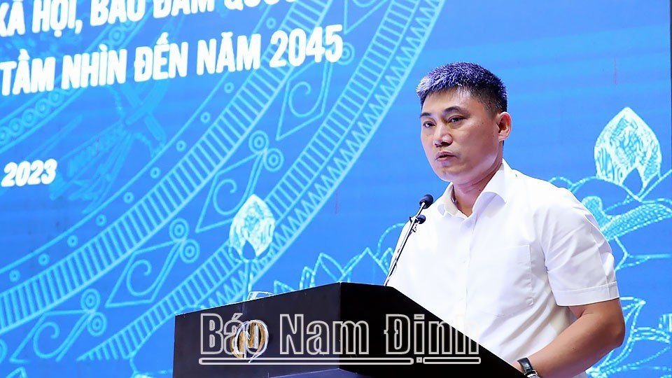 | Đồng chí Phạm Đình Nghị, Phó Bí thư Tỉnh ủy, Chủ tịch UBND tỉnh Nam Định phát biểu chào mừng hội nghị. |