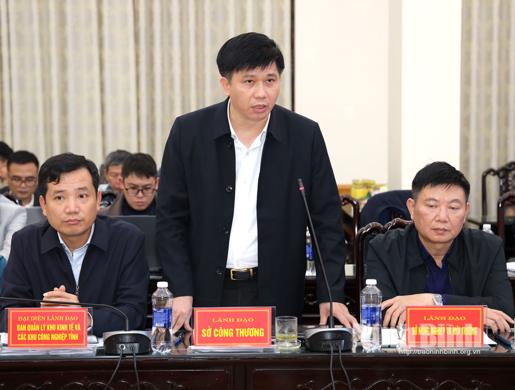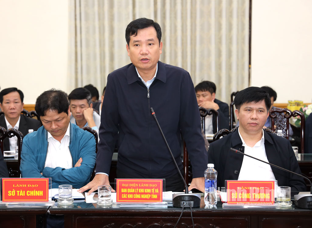 Lãnh đạo Ban Quản lý Khu kinh tế và các Khu công nghiệp tỉnh phát biểu tại hội nghị.