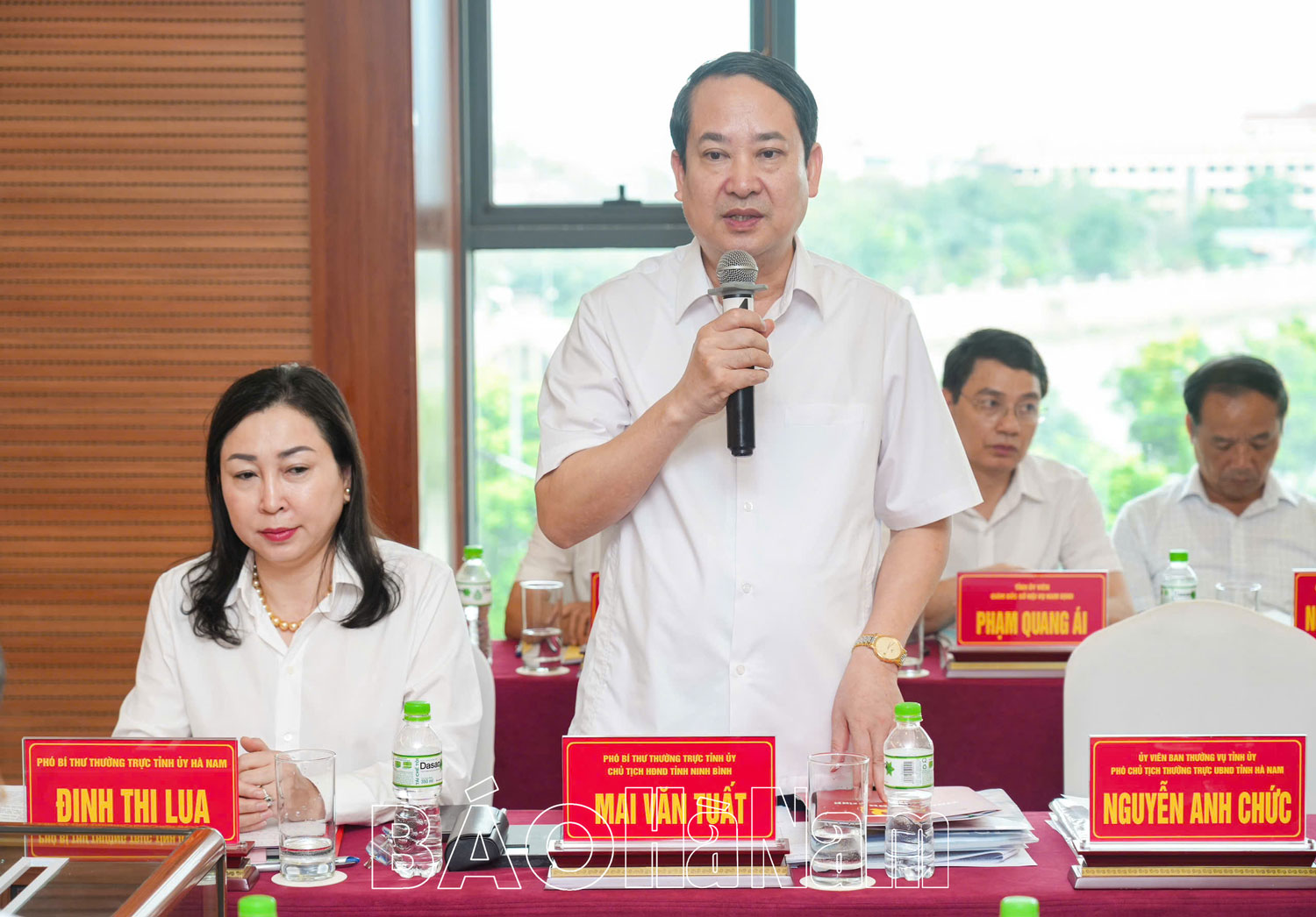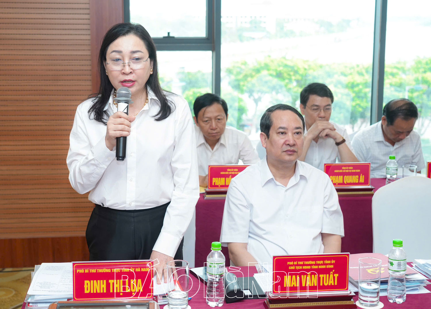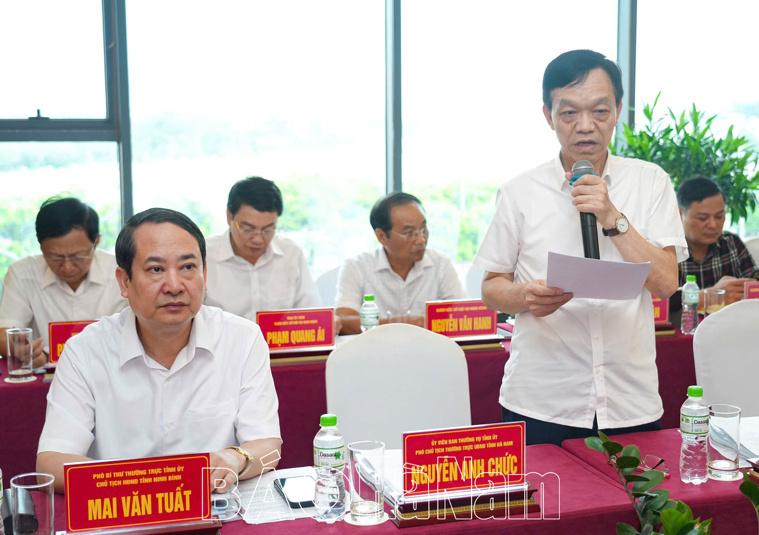 Đồng chí Đinh Thị Lụa, Phó Bí thư Thường trực Tỉnh ủy Hà Nam phát biểu tại hội nghị.Đồng chí Lê Quốc Chỉnh, Phó Bí thư Thường trực Tỉnh ủy, Chủ tịch HĐND tỉnh, Trưởng Đoàn đại biểu Quốc hội tỉnh Nam Định phát biểu tại hội nghị.Đồng chí Mai Văn Tuất, Phó Bí thư Thường trực Tỉnh ủy, Chủ tịch HĐND tỉnh Ninh Bình phát biểu tại hội nghị.