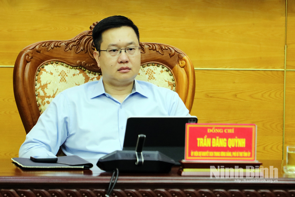 Đồng chí Trần Đăng Quỳnh, Ủy viên Dự khuyết Trung ương Đảng, Phó Bí thư Tỉnh ủy chủ trì hội nghị tại điểm cầu tỉnh Ninh Bình.