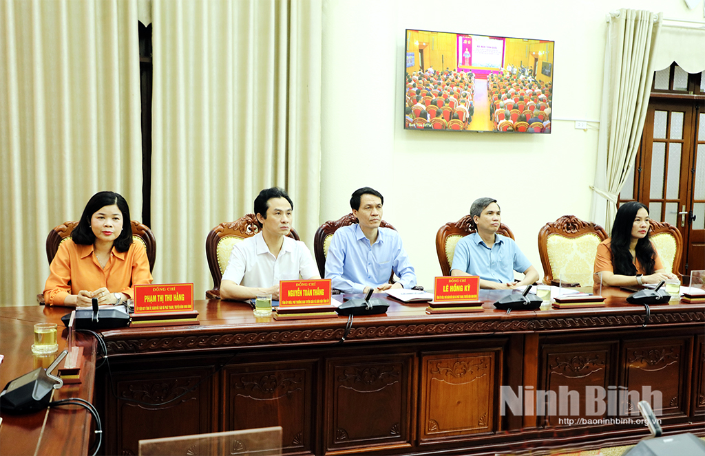 Dự hội nghị có đồng chí Phạm Thị Thu Hằng, Ủy viên Ban Thường vụ Tỉnh ủy, Giám đốc Báo và phát thanh, truyền hình Ninh Bình. Cùng dự có các đồng chí lãnh đạo: Ban Tuyên giáo và Dân vận Tỉnh ủy; Báo và phát thanh, truyền hình Ninh Bình; Hội Văn học Nghệ thuật tỉnh; Liên hiệp các Hội Khoa học và Kỹ thuật tỉnh; Tạp chí Văn nghệ Ninh Bình; đại diện các cơ quan báo chí Trung ương trên địa bàn tỉnh; lãnh đạo Nhà hát Nghệ thuật truyền thống tỉnh.
