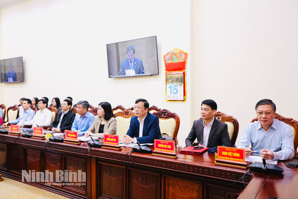 Tại điểm cầu tỉnh Ninh Bình: đồng chí Mai Văn Tuất, Phó Bí thư Tỉnh ủy, Chủ tịch Ủy ban MTTQ Việt Nam tỉnh, Phó Trưởng Ban Chỉ đạo cuộc bầu cử đại biểu Quốc hội khóa XVI và đại biểu HĐND các cấp tỉnh Ninh Bình nhiệm kỳ 2026-2031 (Ban Chỉ đạo) chủ trì hội nghị. Cùng dự có các đồng chí thành viên Ban Chỉ đạo; thành viên Ủy ban Bầu cử đại biểu Quốc hội khóa XVI và đại biểu HĐND các cấp tỉnh Ninh Bình nhiệm kỳ 2026-2031; lãnh đạo một số sở, ban, ngành có liên quan.