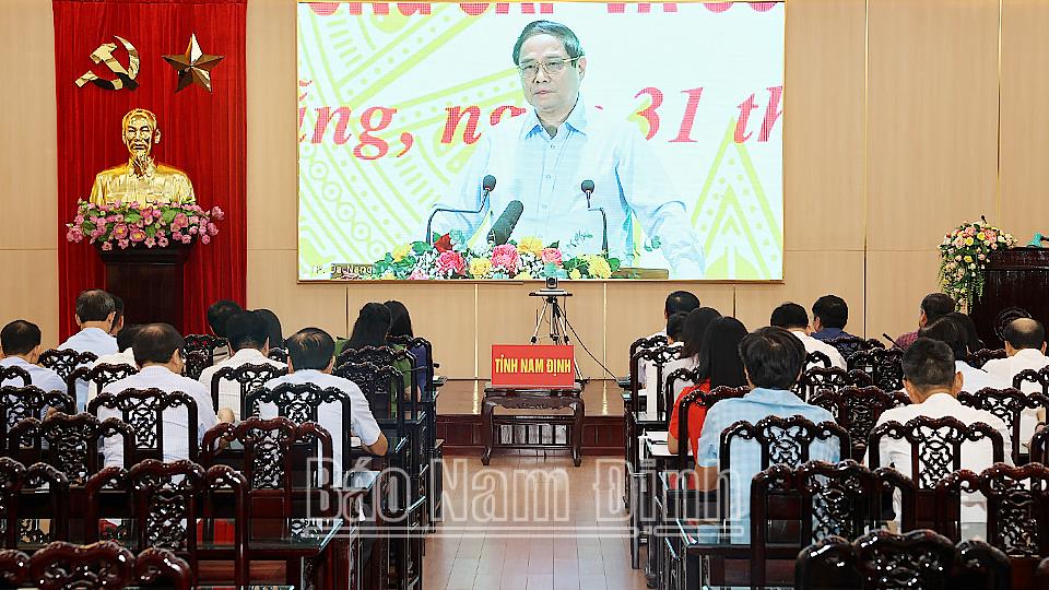 | Đồng chí Phạm Đình Nghị, Phó Bí thư Tỉnh uỷ, Chủ tịch UBND tỉnh, Trưởng Ban Chỉ đạo chuyển đổi số tỉnh chủ trì hội nghị tại điểm cầu tỉnh Nam Định. |