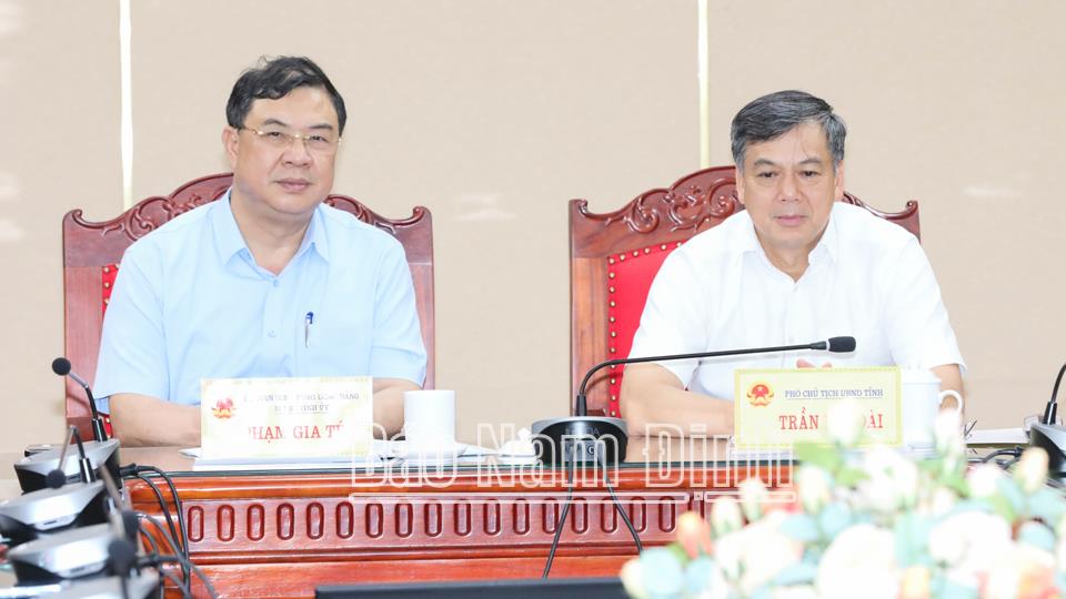 | Các đồng chí: Phạm Gia Túc, Uỷ viên BCH Trung ương Đảng, Bí thư Tỉnh uỷ; Trần Lê Đoài, TUV, Phó Chủ tịch UBND tỉnh chủ trì hội nghị tại điểm cầu Nam Định. |