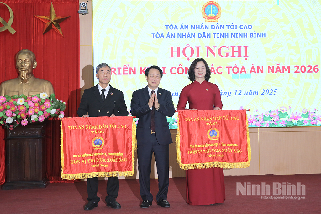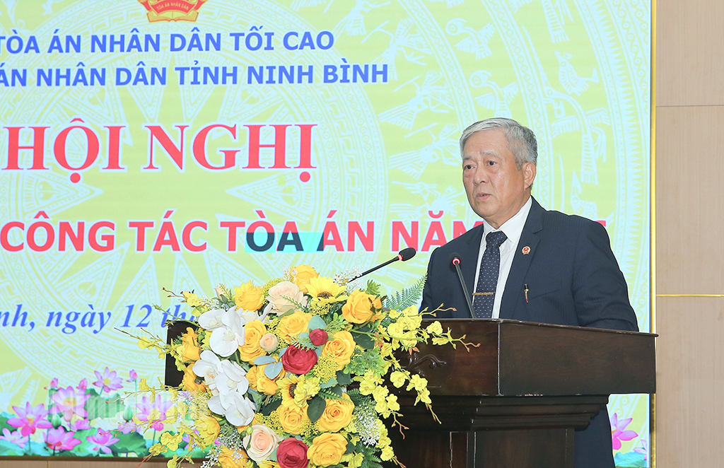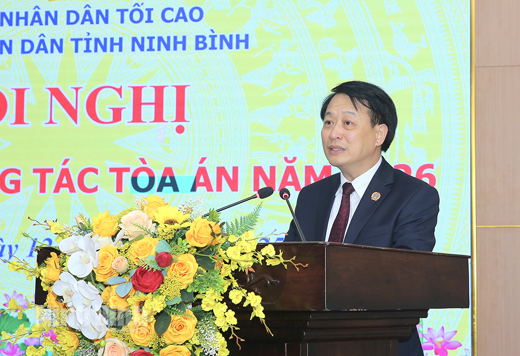 Phát biểu chỉ đạo hội nghị, đồng chí Ngô Tiến Hùng, Thẩm phán TAND tối cao ghi nhận tinh thần nỗ lực của TAND 02 cấp tỉnh Ninh Bình trong năm 2025, năm đầu triển khai Nghị quyết 81/2025/UBTVQH15 về sắp xếp tổ chức, với nhiều khó khăn về cơ sở vật chất và nhân lực song kết quả giải quyết án đạt kết quả cao, không để quá hạn, nhiều chỉ tiêu vượt yêu cầu; đồng thời, biểu dương việc tổ chức phiên tòa rút kinh nghiệm, phiên tòa trực tuyến, đẩy mạnh chuyển đổi số, nâng cao kỷ luật công vụ.