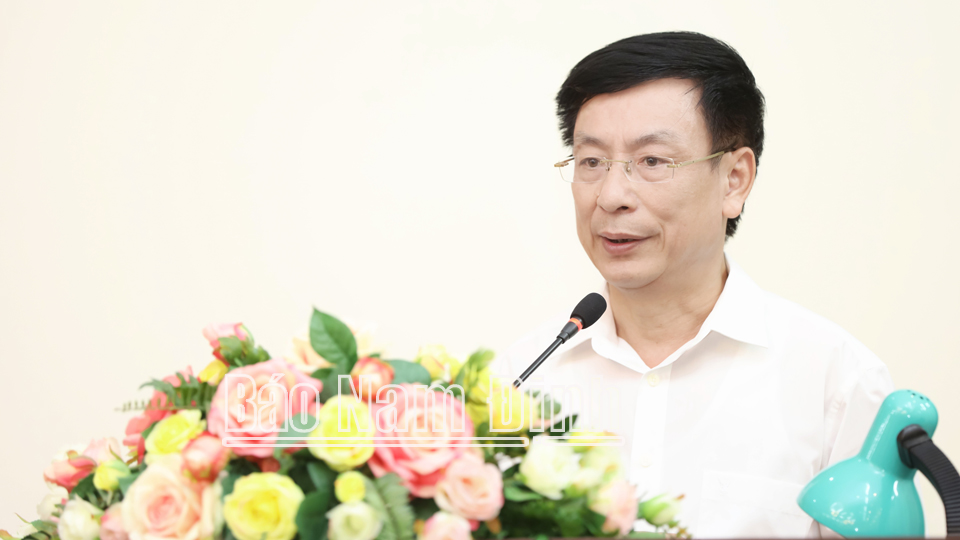 | Đồng chí Chủ tịch UBND tỉnh Phạm Đình Nghị phát biểu kết luận hội nghị. |