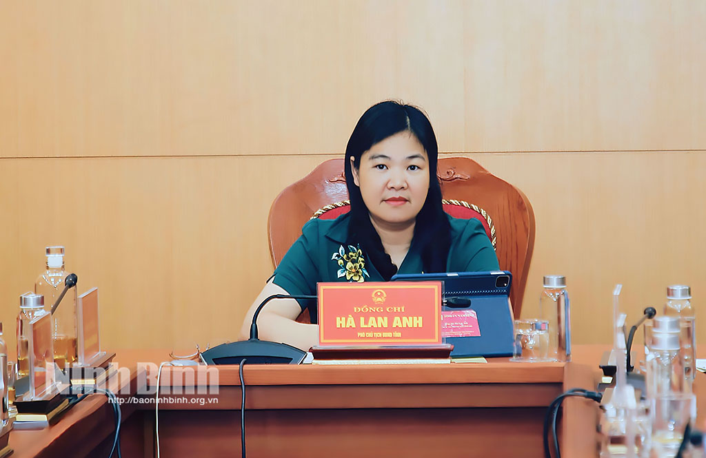 Đồng chí Hà Lan Anh, Tỉnh ủy viên, Phó Chủ tịch UBND tỉnh, Phó Trưởng Ban Thường trực Ban Chỉ đạo của UBND tỉnh về phát triển KHCN, ĐMST, CĐS và Đề án 06 chủ trì hội nghị tại điểm cầu tỉnh Ninh Bình.