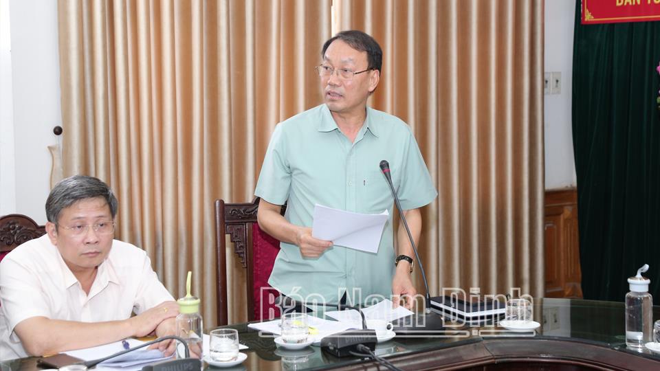 | Đồng chí Phạm Gia Túc, Uỷ viên BCH Trung ương Đảng, Bí thư Tỉnh ủy và các đại biểu dự hội nghị tại điểm cầu tỉnh Nam Định. |