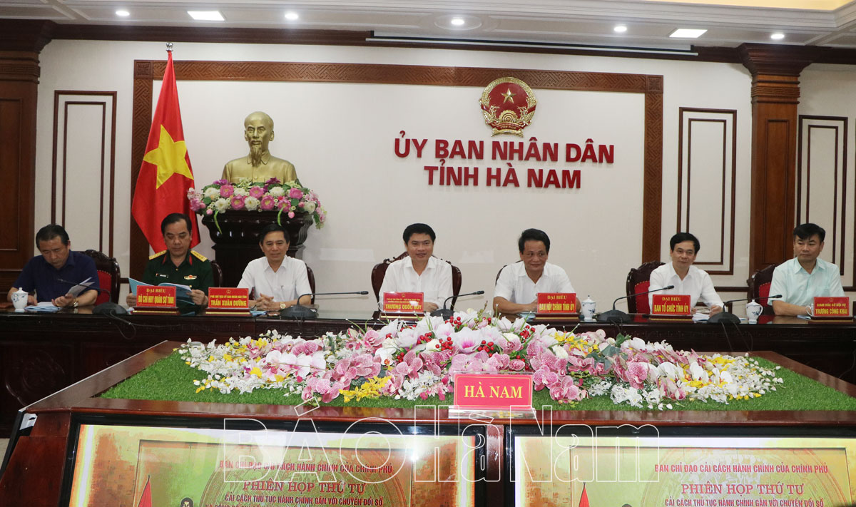 Dự phiên họp tại điểm cầu Hà Nam có các đồng chí: Trương Quốc Huy, Phó Bí thư Tỉnh ủy, Chủ tịch UBND tỉnh, Trưởng đoàn ĐBQH tỉnh, Trưởng Ban Chỉ đạo cải cách hành chính tỉnh; Trần Xuân Dưỡng, TUV, Phó Chủ tịch UBND tỉnh, Phó Trưởng Ban Chỉ đạo CCHC tỉnh; các thành viên Ban Chỉ đạo CCHC tỉnh; đại diện lãnh đạo các sở, ban, ngành; lãnh đạo UBMTTQ, Hội CCB và một số ngành liên quan cùng lãnh đạo UBND các huyện, thị xã, thành phố.