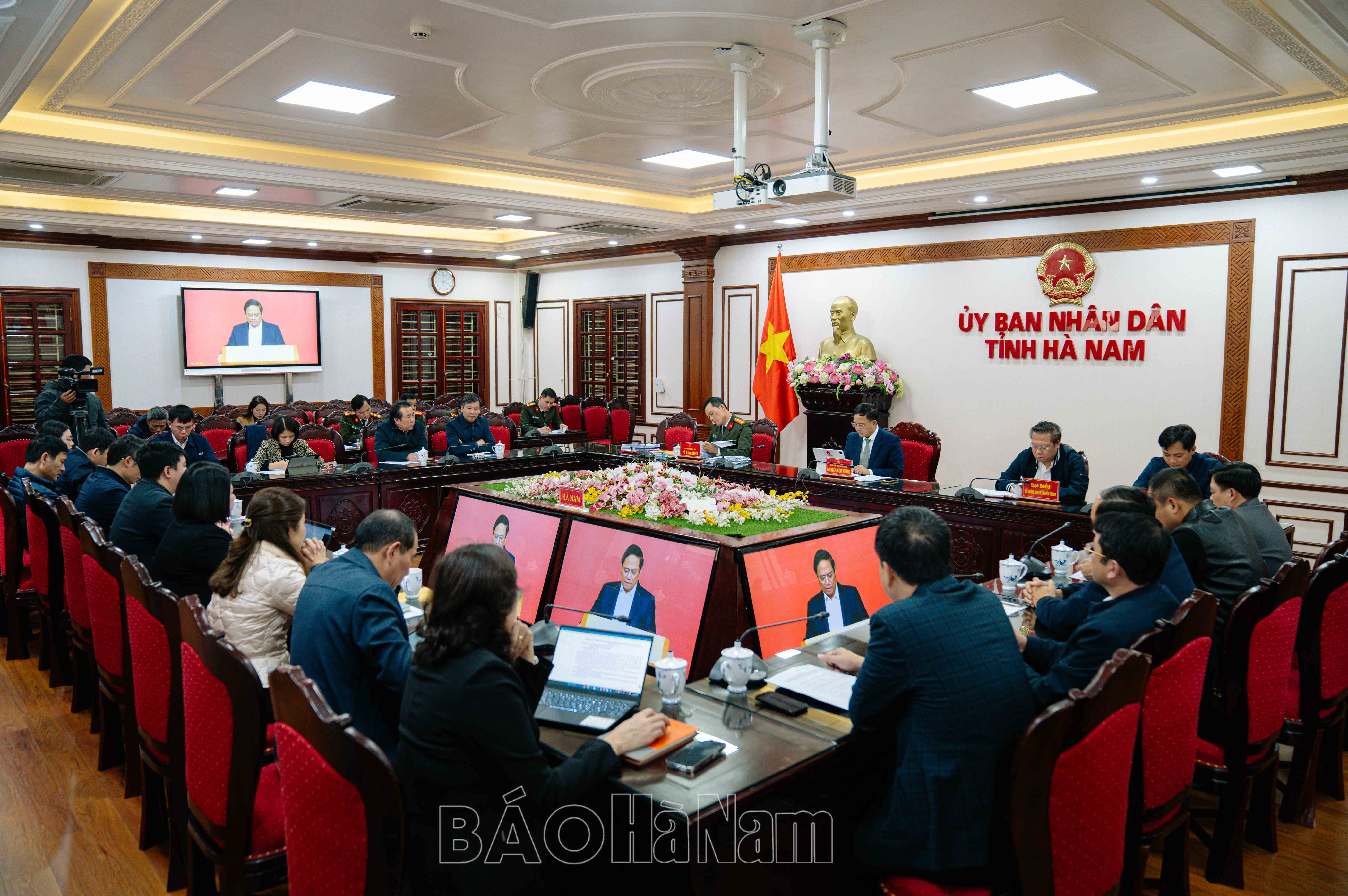 Các đại biểu dự Hội nghị trực tuyến tại điểm cầu UBND tỉnh.