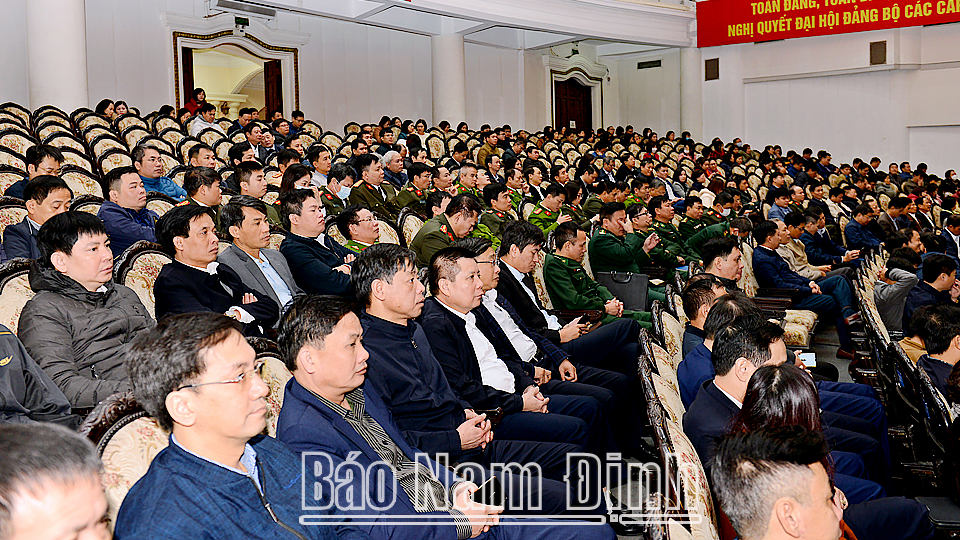 Dự hội nghị tại điểm cầu tỉnh Nam Định có các đồng chí: Phạm Gia Túc, Ủy viên BCH Trung ương Đảng, Bí thư Tỉnh ủy; Lê Quốc Chỉnh, Phó Bí thư Thường trực Tỉnh ủy, Chủ tịch HĐND tỉnh, Trưởng đoàn Đoàn đại biểu Quốc hội tỉnh; Phạm Đình Nghị, Phó Bí thư Tỉnh ủy, Chủ tịch UBND tỉnh; các đồng chí Ủy viên Ban TVTU, Ủy viên BCH Đảng bộ tỉnh; lãnh đạo các sở, ban, ngành, đoàn thể của tỉnh; các đồng chí nguyên là lãnh đạo chủ chốt của tỉnh qua các thời kỳ. Hội nghị được kết nối đến 279 điểm cầu trên địa bàn toàn tỉnh với gần 51 nghìn đảng viên tham dự.