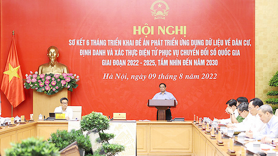 gày 9-8, Bộ Công an phối hợp với Văn phòng Chính phủ tổ chức hội nghị trực tuyến toàn quốc sơ kết 6 tháng triển khai Đề án phát triển ứng dụng dữ liệu về dân cư, định danh và xác thực điện tử phục vụ chuyển đổi số quốc gia 2022 - 2025, tầm nhìn 2030 (Đề án 06). Thủ tướng Chính phủ Phạm Minh Chính, Chủ tịch Ủy ban Quốc gia về chuyển đổi số chủ trì hội nghị. Dự hội nghị tại điểm cầu Trụ sở Chính phủ có Phó Thủ tướng, Phó Chủ tịch Ủy ban quốc gia về chuyển đổi số Vũ Đức Đam; lãnh đạo các bộ, ngành; lãnh đạo các tập đoàn kinh tế trong lĩnh vực công nghệ, viễn thông, thông tin. Hội nghị được kết nối trực tuyến với điểm cầu các bộ, ngành, tỉnh, thành phố trực thuộc Trung ương; các huyện, thị xã; xã, phường trong toàn quốc với tổng số hơn 10.000 điểm cầu và hơn 130.700 đại biểu tham dự.