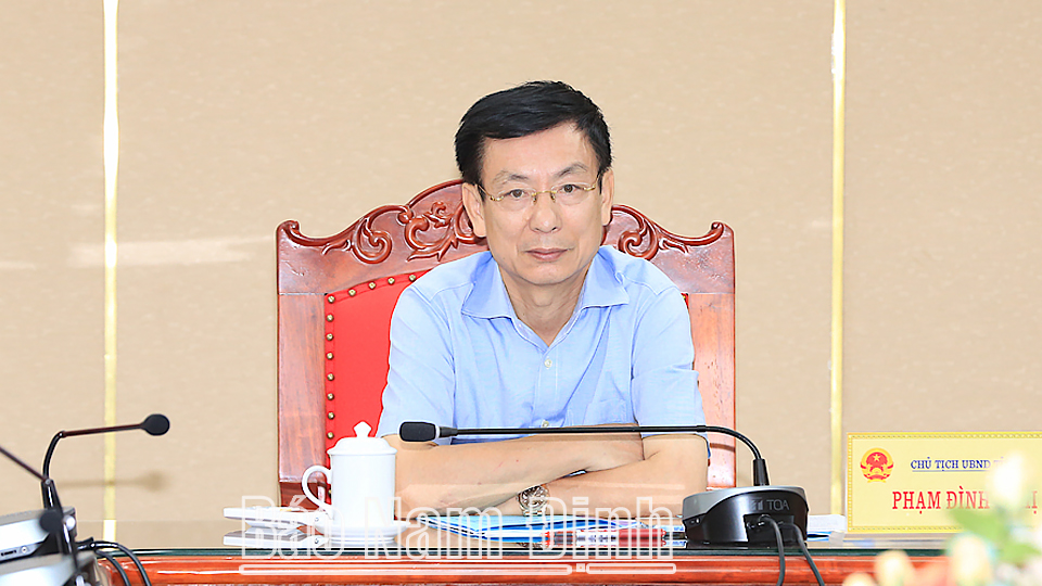 | Đồng chí Chủ tịch UBND tỉnh Phạm Đình Nghị chủ trì hội nghị tại điểm cầu tỉnh Nam Định.