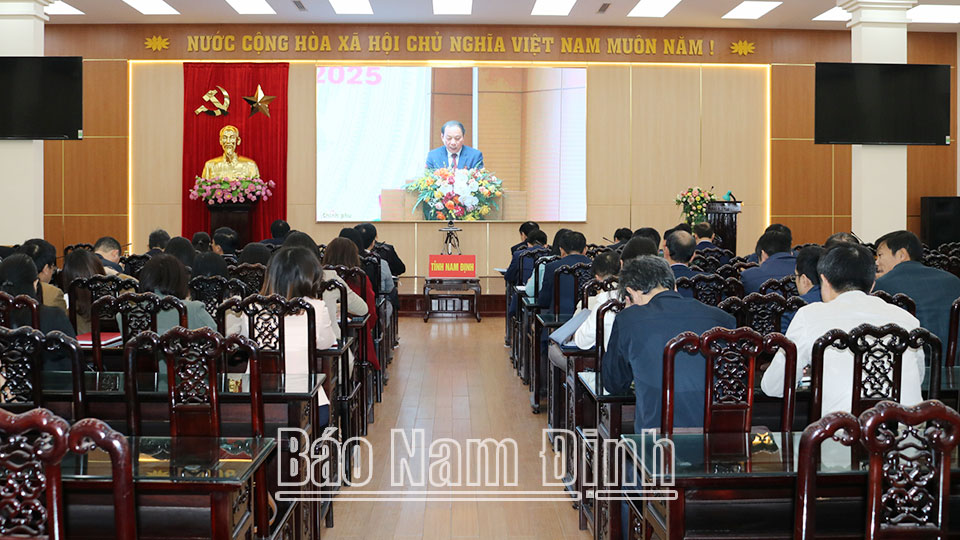 | Quang cảnh hội nghị trực tuyến tại điểm cầu tỉnh Nam Định. |