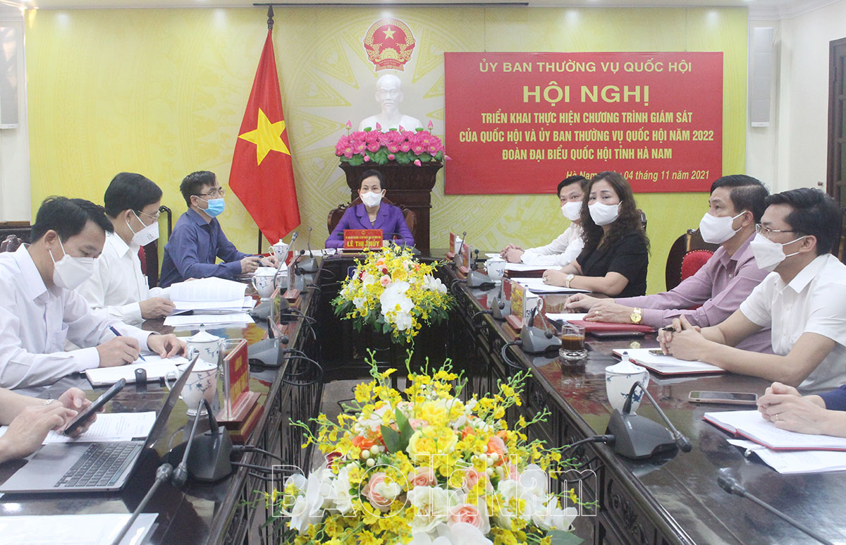 Đồng chí Lê Thị Thủy, Ủy viên Trung ương Đảng, Bí thư Tỉnh ủy, Chủ tịch HĐND tỉnh chủ trì tại điểm cầu tỉnh Hà Nam. Tham dự hội nghị có các đồng chí Thường trực HĐND, lãnh đạo UBND tỉnh, UB MTTQ tỉnh và các vị ĐBQH tỉnh.