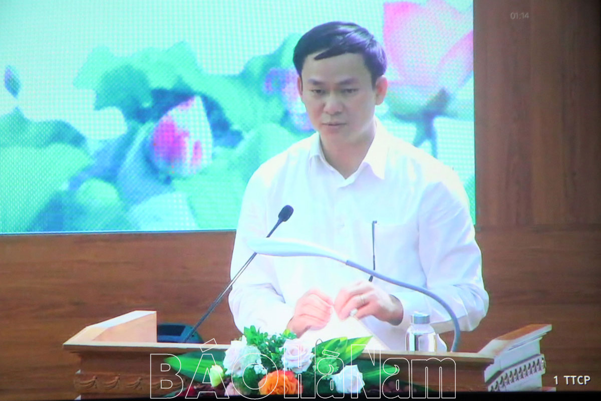 Đồng chí Nguyễn Đức Vượng, Tỉnh ủy viên, Phó Chủ tịch UBND tỉnh chủ trì hội nghị tại điểm cầu Hà Nam.