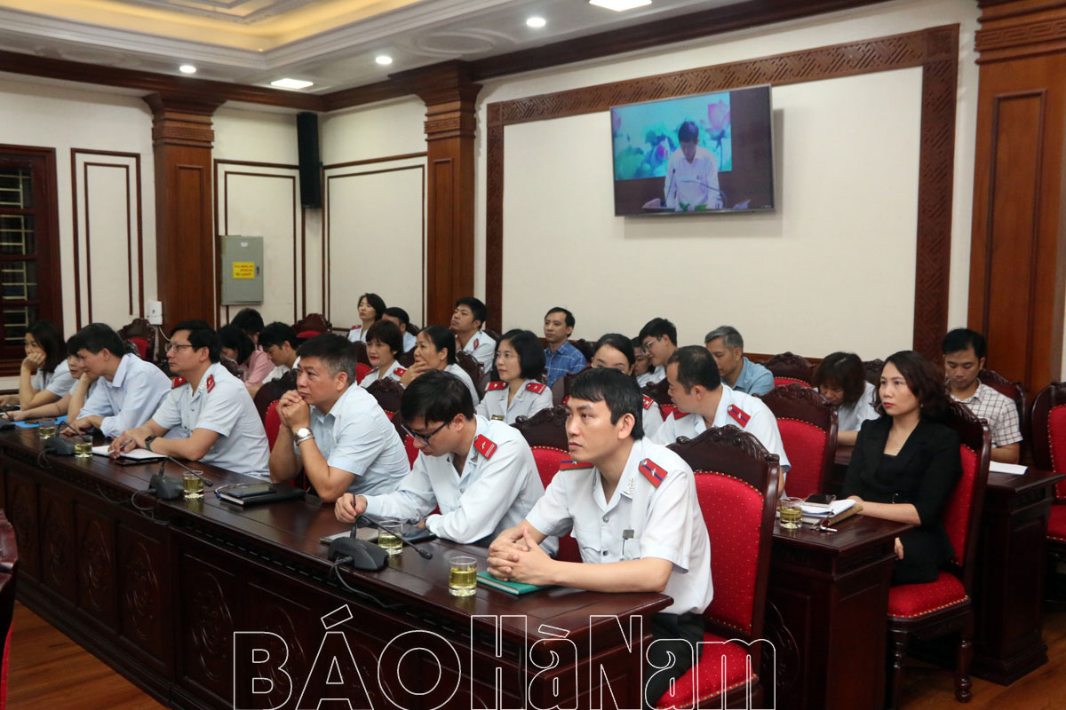 Cán bộ, công chức, viên chức ngành Thanh tra tỉnh tham dự hội nghị tại điểm cầu Hà Nam.