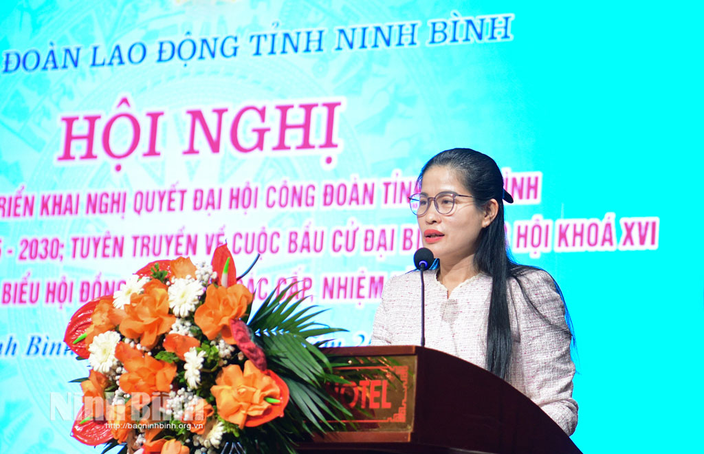 Tại hội nghị, các đại biểu được quán triệt, triển khai Nghị quyết Đại hội Công đoàn tỉnh Ninh Bình lần thứ I, nhiệm kỳ 2025-2030. Theo đó, trong nhiệm kỳ mới này, LĐLĐ tỉnh tập trung đổi mới nội dung, phương thức hoạt động; Thực hiện tốt chức năng, nhiệm vụ của tổ chức công đoàn, trọng tâm là đại diện, chăm lo, bảo vệ quyền, lợi ích hợp pháp, chính đáng của đoàn viên, người lao động, xây dựng quan hệ lao động hài hoà, ổn định, tiến bộ trong doanh nghiệp; Tiếp tục đổi mới, sáng tạo trong công tác tuyên truyền, vận động và tổ chức các phong trào thi đua yêu nước; Hoàn thiện mô hình tổ chức, bộ máy, tập trung nguồn lực xây dựng đội ngũ cán bộ công đoàn tinh gọn, mạnh, có năng lực, thích ứng đáp ứng yêu cầu kỷ nguyên số, góp phần xây dựng tổ chức công đoàn vững mạnh, đóng góp tích cực vào sự phát triển kinh tế - xã hội của tỉnh, của đất nước.