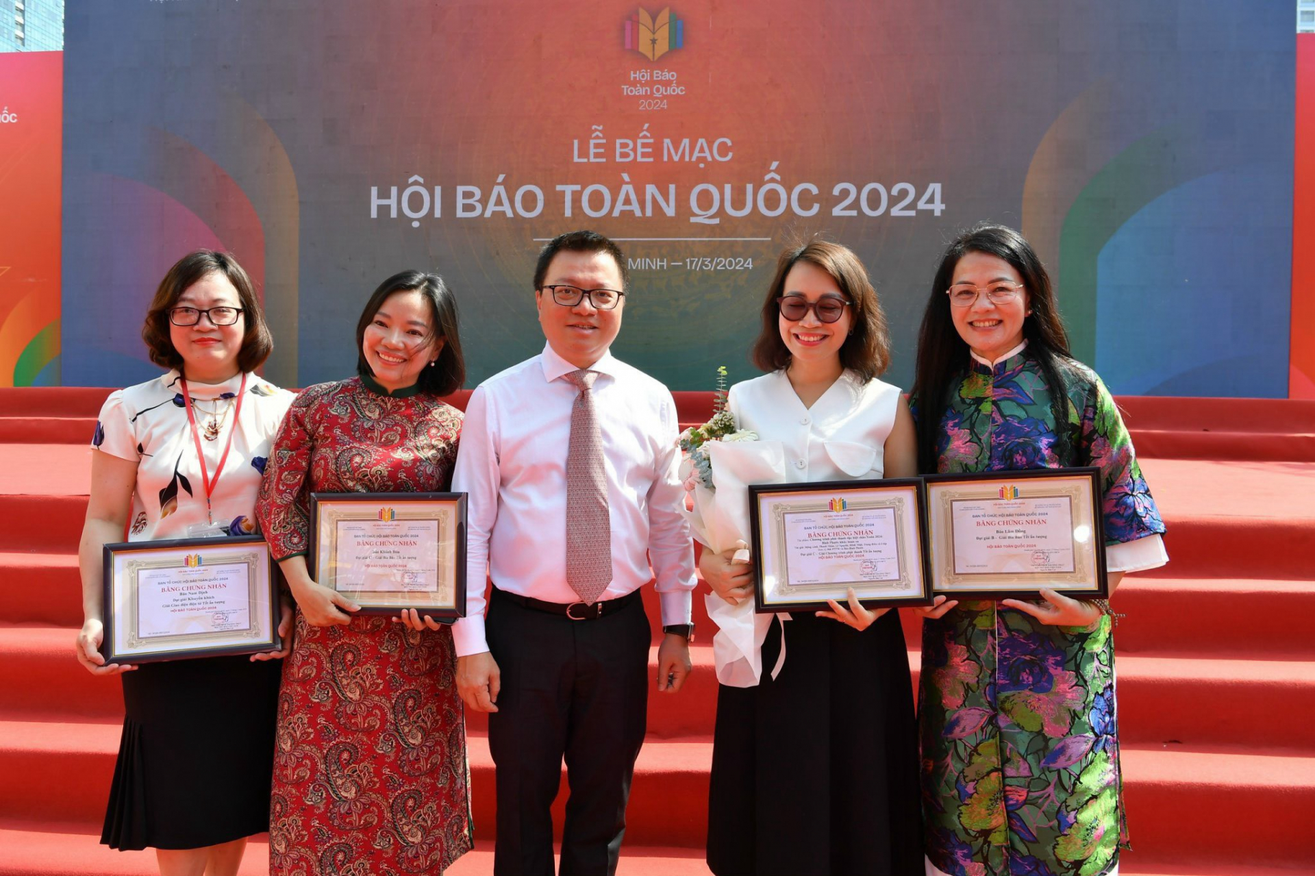 | Các đại diện cơ quan báo chí nhận giải Gian trưng bày xuất sắc tại Hội Báo toàn quốc 2024. |