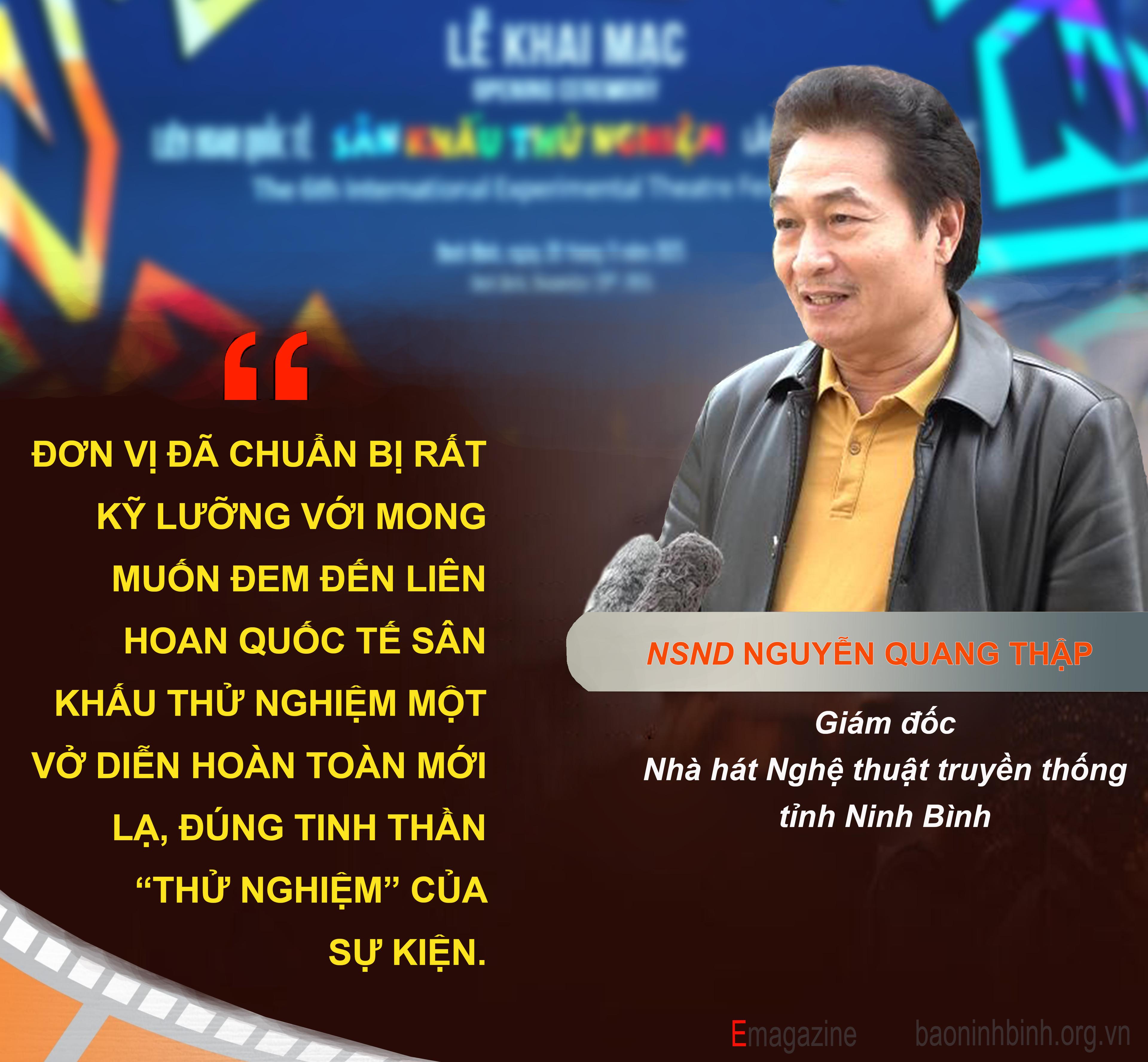 Việc chọn Ninh Bình làm một trong những điểm tổ chức Liên hoan Quốc tế sân khấu thử nghiệm lần thứ VI mang nhiều ý nghĩa quan trọng. Ninh Bình không chỉ là vùng đất giàu truyền thống lịch sử - văn hóa, nơi từng là kinh đô của Nhà nước Đại Cồ Việt, mà còn sở hữu cảnh quan thiên nhiên hùng vĩ với Di sản Văn hóa - Thiên nhiên thế giới Quần thể Danh thắng Tràng An được UNESCO vinh danh.