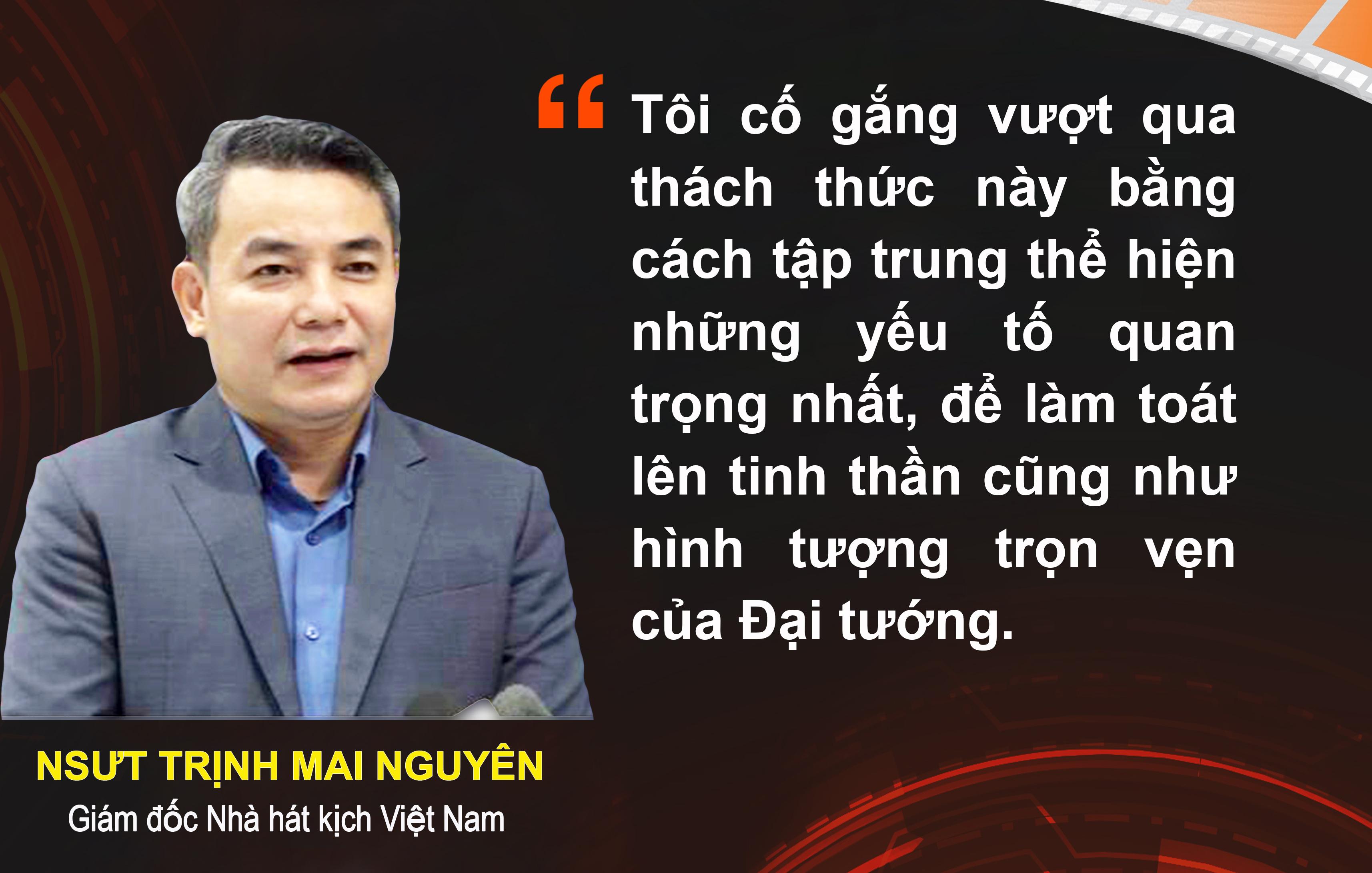 Đảm nhận vai diễn Đại tướng Võ Nguyên Giáp trong vở diễn “Người đi dép cao su” của Nhà hát Kịch Việt Nam, NSƯT Trịnh Mai Nguyên cho rằng đây là một trong những thử thách rất lớn của mình: Mỗi chương trình hay bộ phim đều khai thác hình tượng Đại tướng ở những góc cạnh khác nhau, vì vậy, tôi luôn tự nhủ phải tìm tòi, khám phá và hiểu sâu thông điệp mà đạo diễn muốn truyền tải trong vở diễn “Người đi dép cao su”.