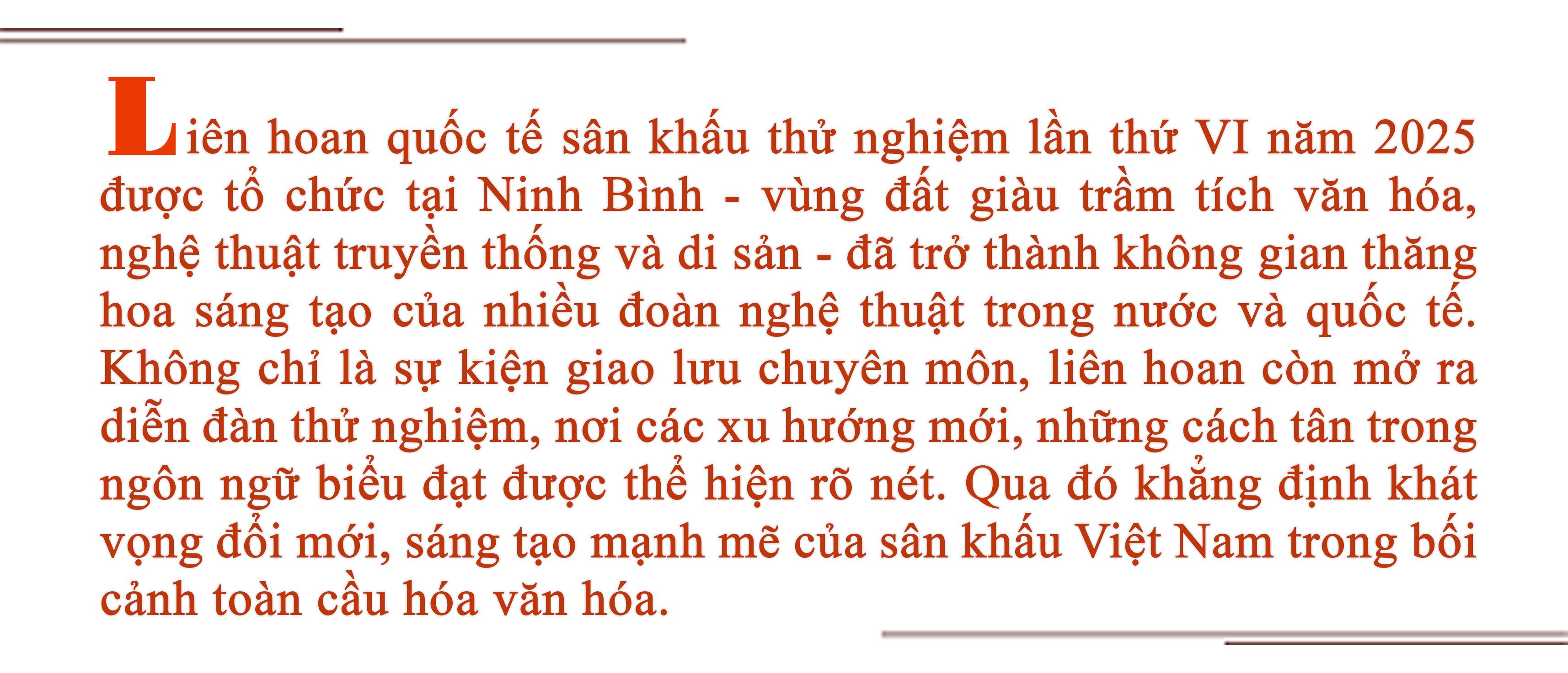 Liên hoan Quốc tế sân khấu thử nghiệm lần thứ VI tại Ninh Bình đã thực sự khẳng định vị thế là một sự kiện nghệ thuật tầm cỡ, nơi giao thoa văn hóa, trao đổi chuyên môn và thăng hoa sáng tạo. Liên hoan đã mở ra những cơ hội hợp tác mới, góp phần thúc đẩy sự phát triển liên tục của sân khấu đương đại. Không chỉ là sân chơi cho nghệ sĩ, Liên hoan còn là cầu nối để khán giả, nghệ sĩ và các nền văn hóa gặp gỡ, cảm nhận và chia sẻ, tạo nên những dấu ấn khó quên về tinh thần đổi mới, sáng tạo và hội nhập văn hóa.