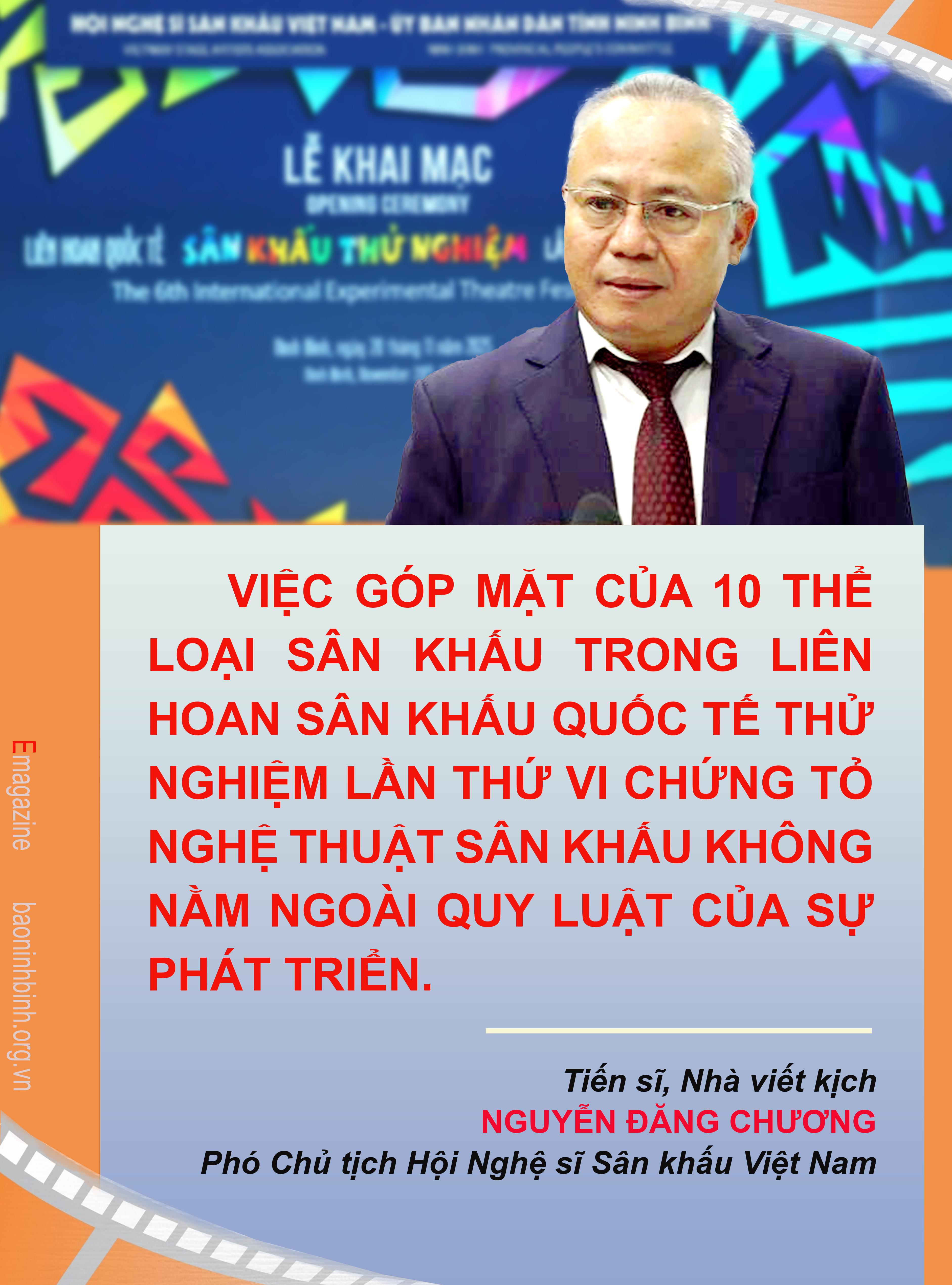 Đúng như tên gọi, Liên hoan Quốc tế sân khấu thử nghiệm lần thứ VI đã mở ra một không gian nghệ thuật nơi tinh thần sáng tạo được khơi dậy mạnh mẽ và lan tỏa rộng khắp. Các Đoàn nghệ thuật tham dự đều mang đến những tìm tòi mới trong ngôn ngữ sân khấu, những cấu trúc biểu đạt khác lạ, những cách tiếp cận táo bạo với chất liệu truyền thống và hiện đại. Ở đó, mỗi vở diễn như một thử nghiệm sống động, phản ánh nỗ lực không ngừng vượt khỏi giới hạn quen thuộc để tìm được hình thức thể hiện phù hợp nhất với câu chuyện và cảm xúc nghệ thuật. Chính những sáng tạo ấy đã làm cho Liên hoan trở thành điểm hẹn của tinh thần đổi mới, góp phần tạo nên diện mạo phong phú và sinh động cho sân khấu đương đại.