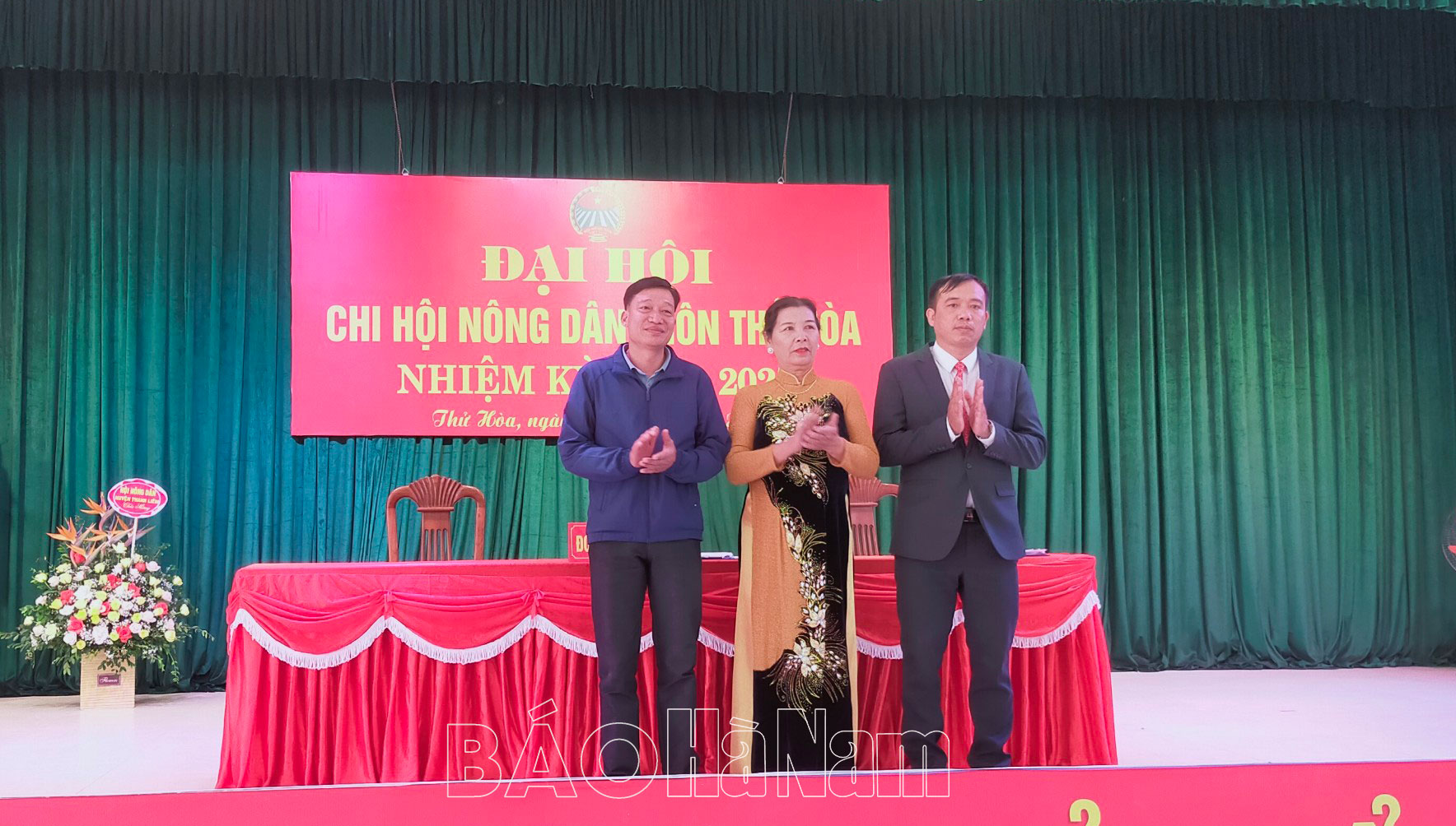 Lãnh đạo Hội Nông dân huyện Thanh Liêm tặng hoa chúc mừng đại hội.