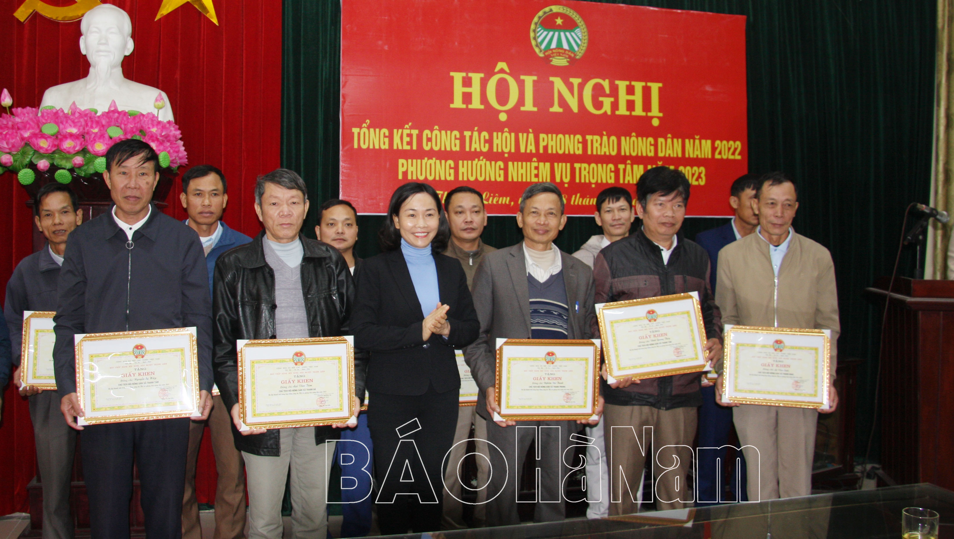 Lãnh đạo HND huyện Thanh Liêm trao giấy khen cho các tập thể có thành tích xuất sắc trong công tác hội và phong trào nông dân năm 2022.