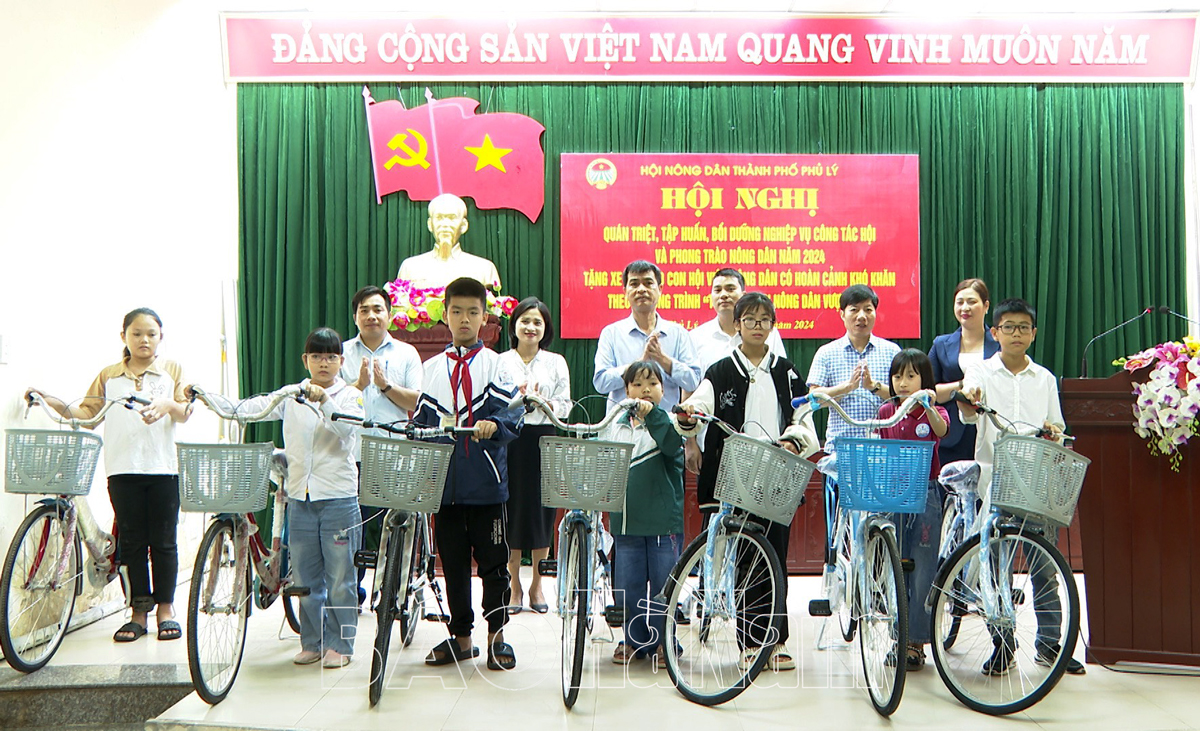 Hội Nông dân thành phố Phủ Lý vừa tổ chức hội nghị quán triệt, tập huấn, bồi dưỡng nghiệp vụ công tác Hội và phong trào Nông dân năm 2024; Tặng xe đạp cho con hội viên có hoàn cảnh khó khăn theo chương trình “Tiếp sức con nông dân vượt khó”.