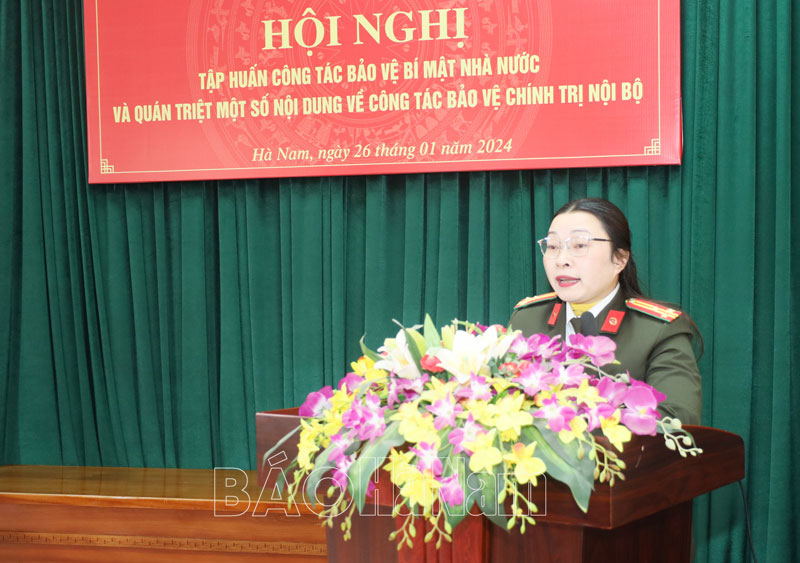 Tại buổi tập huấn, Thượng tá Nguyễn Thị Huệ, Phó Trưởng phòng An ninh chính trị nội bộ, Công an tỉnh đã truyền đạt các nội dung liên quan đến công tác bảo vệ chính trị nội bộ gắn với bí mật Nhà nước; những quy định của Luật Bảo vệ bí mật Nhà nước, các văn bản hướng dẫn thi hành, quy định, quy chế của Tỉnh ủy, UBND tỉnh liên quan đến bảo vệ bí mật Nhà nước; những nguy cơ dẫn đến lộ, lọt thông tin bí mật Nhà nước; các hành vi lừa đảo trên không gian mạng…