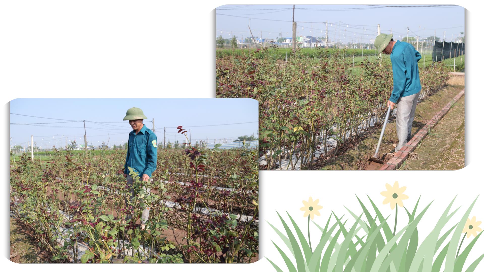 Khác với gia đình chị Yến chuyên trồng cúc, gia đình anh Hoàng Văn Tiến, tổ dân phố số 2, phường Nam Phong chỉ chuyên trồng hoa hồng. Anh Tiến hiện có 6 sào hoa hồng. Mặc dù bị ngập lụt nhưng do hồng là giống cây tương đối khoẻ nên ruộng hồng của anh Tiến không bị chết quá nhiều. “Để “cứu” ruộng hoa, sau khi nước rút bớt tôi đã tìm cách tháo nước trong các chân ruộng. Nước rút hết, tôi sử dụng các loại thuốc kích rễ hỗ trợ cho cây sinh trưởng và phát triển. Ngoài ra, tôi bón thêm các loại phân, các loại thuốc phòng trừ nấm, sâu bệnh. Vì vậy, ruộng hồng của tôi phục hồi tương tương đối nhanh, hy vọng tết sẽ cho thu hoạch”, anh Tiến chia sẻ.