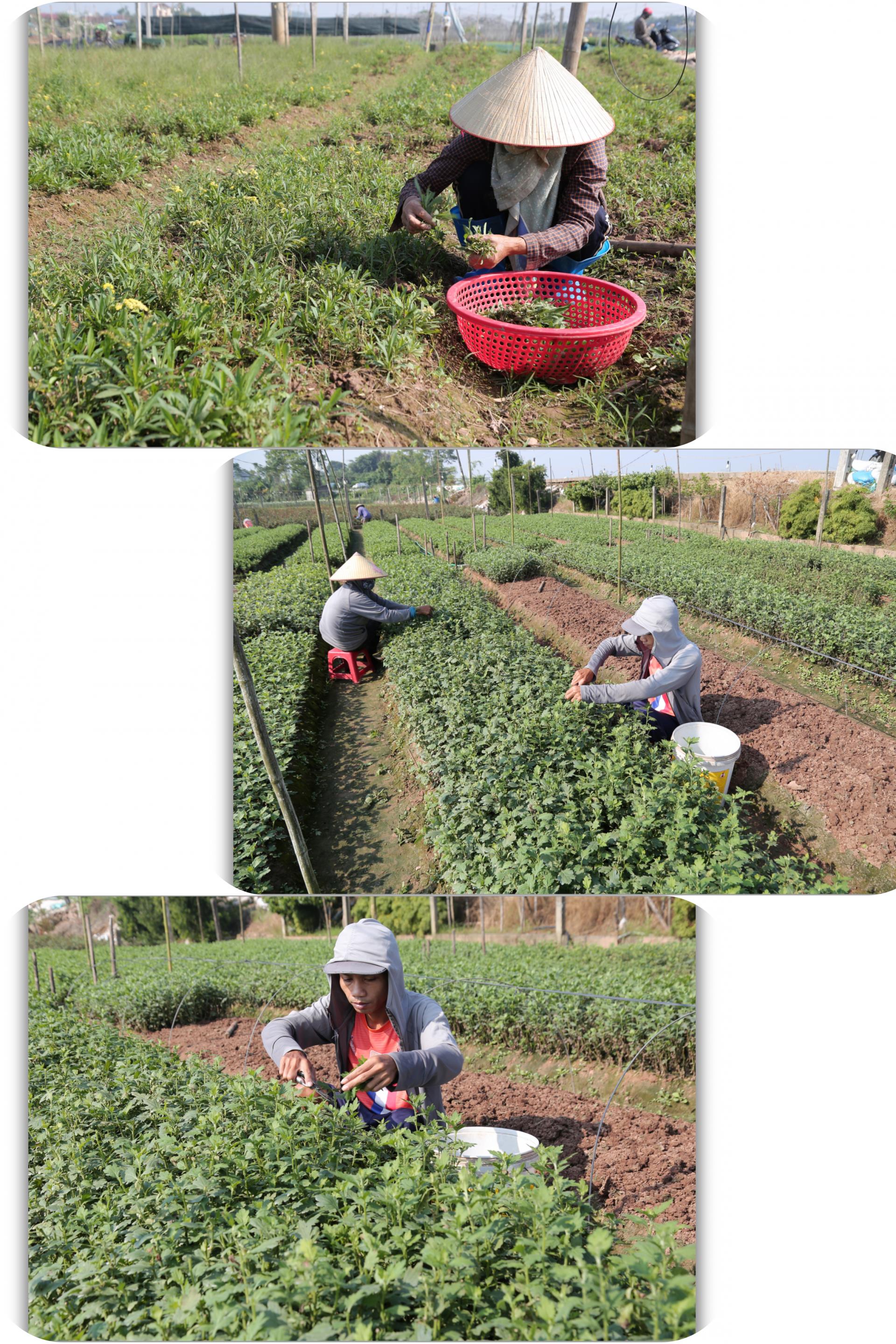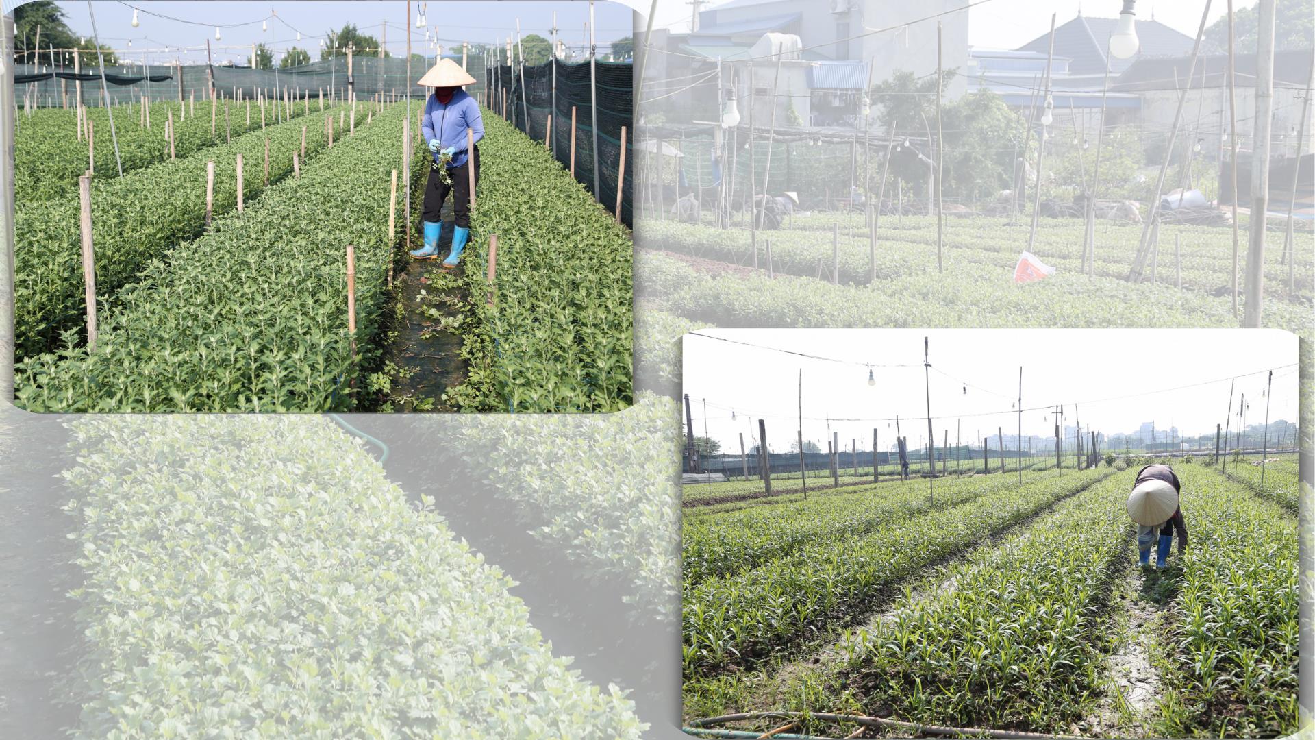 | Người trồng hoa tranh thủ thời tiết nắng ấm chăm sóc ruộng hoa |