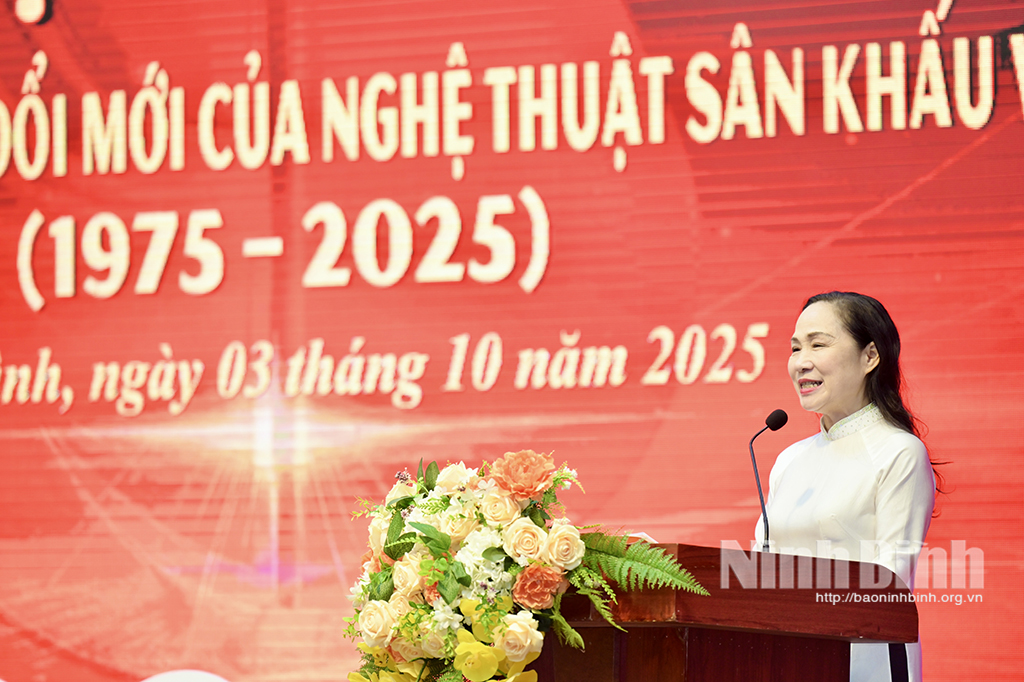 NSND Trịnh Thúy Mùi, Phó Chủ tịch Liên hiệp các Hội Văn học nghệ thuật Việt Nam, Chủ tịch Hội nghệ sĩ Sân khấu Việt Nam phát biểu khai mạc Hội thảo nêu rõ: “Hội thảo 50 năm chặng đường đổi mới của nghệ thuật sân khấu Việt Nam” là sự kiện đầu tiên của các sự kiện Giỗ Tổ Sân khấu Huyền nữ Phạm Thị Trân. Hội thảo "50 năm chặng đường đổi mới của nghệ thuật sân khấu Việt Nam" và Ngày Sân khấu Việt Nam năm 2025 được tổ chức tại Ninh Bình, một trung tâm văn hóa giàu đẹp và lớn bậc nhất của Đồng bằng và duyên hải miền Bắc nước ta. Thay mặt 2.500 hội viên của Hội Nghệ sĩ Sân khấu Việt Nam, NSND Trịnh Thúy Mùi bày tỏ lòng biết ơn lãnh đạo và nhân dân tỉnh Ninh Bình trong nhiều năm qua luôn ủng hộ và tạo mọi điều kiện tốt nhất để tổ chức thành công nhiều sự kiện sân khấu toàn quốc tại quê hương của vị tổ Sân khấu Huyền nữ Phạm Thị Trân.