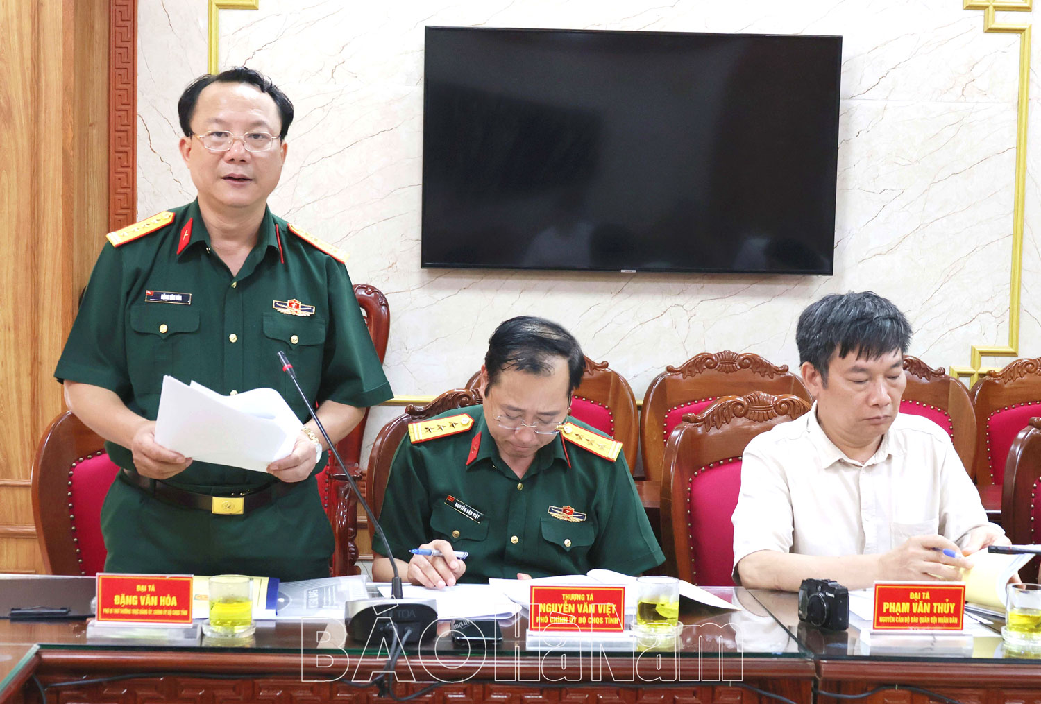 Chiều 29/5, tại Bộ CHQS tỉnh, Ban Chỉ đạo (BCĐ) biên soạn tái bản cuốn sách “Tướng lĩnh và Anh hùng lực lượng vũ trang (LLVT) nhân dân quê hương Hà Nam (1945 - 2025)” tổ chức hội thảo lấy ý kiến đóng góp của các ngành chức năng, tướng lĩnh để bổ sung tư liệu, chứng cứ lịch sử hoàn thiện và xuất bản cuốn sách. Đồng chí Đinh Thị Lụa, Phó Bí thư Thường trực Tỉnh uỷ, Phó Trưởng BCĐ tái bản cuốn sách chủ trì hội thảo. Dự hội thảo có đồng chí Nguyễn Đức Toàn, Ủy viên Ban Thường vụ (BTV) Tỉnh ủy, Trưởng Ban Tuyên giáo và Dân vận Tỉnh ủy; các đồng chí trong BCĐ, Ban biên soạn, Tổ sưu tầm và biên tập; thường trực Ban Liên lạc Tướng lĩnh quê hương Hà Nam.