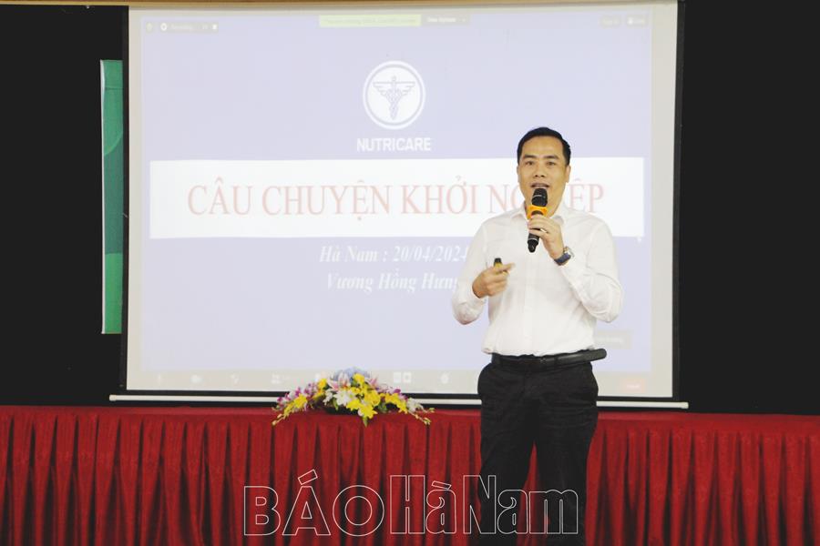 Diễn giả chia sẻ kinh nghiệm khởi nghiệp.