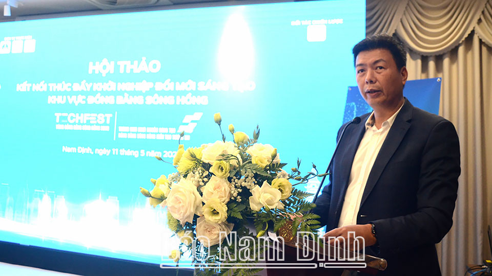 Nằm trong khuôn khổ chuỗi sự kiện thúc đẩy phát triển KHCN và ĐMST năm 2023, sáng 11-5, tại khách sạn Nam Cường (thành phố Nam Định), Sở Khoa học và Công nghệ (KH và CN) phối hợp với Cục Phát triển thị trường và doanh nghiệp KH và CN (Bộ KH và CN) tổ chức hội thảo “Kết nối thúc đẩy khởi nghiệp đổi mới sáng tạo (KNĐMST) khu vực đồng bằng sông Hồng (ĐBSH)”. Dự buổi hội thảo có đại diện lãnh đạo: Cục Phát triển thị trường và doanh nghiệp KH và CN, Trung tâm Hỗ trợ khởi nghiệp sáng tạo Quốc gia; lãnh đạo UBND và Sở KH và CN các tỉnh, thành phố, các hiệp hội, doanh nghiệp vùng ĐBSH.