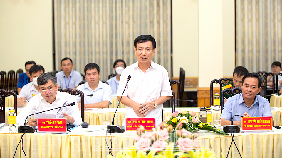 | Đồng chí Chủ tịch UBND tỉnh Phạm Đình Nghị phát biểu tại hội thảo. |