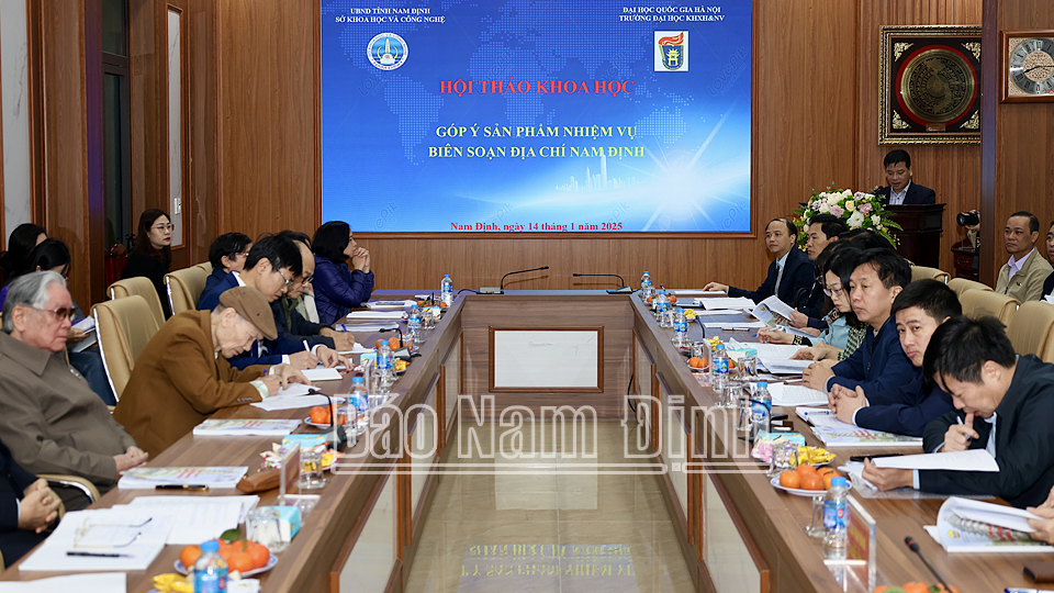 Sáng 14/1, Sở Khoa học và Công nghệ (KH và CN) đã tổ chức Hội thảo khoa học góp ý sản phẩm nhiệm vụ Biên soạn Địa chí Nam Định. Dự hội thảo có đồng chí Trần Lê Đoài, TUV, Phó Chủ tịch UBND tỉnh; lãnh đạo các sở, ban, ngành của tỉnh; Trường Chính trị Trường Chinh, Trường Đại học Khoa học xã hội và Nhân văn (Đại học quốc gia Hà Nội); các chuyên gia, nhà khoa học.