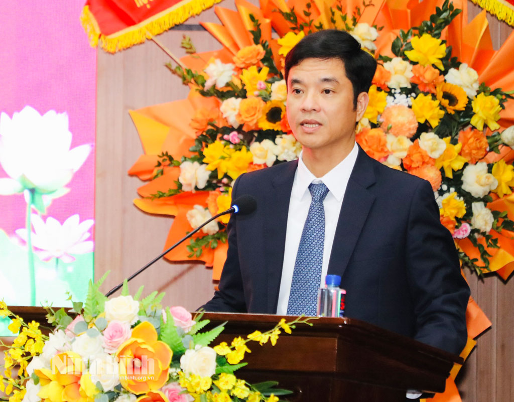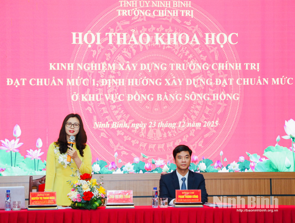 Đồng chí Phan Thành Công, Tỉnh ủy viên, Hiệu trưởng Trường Chính trị tỉnh Ninh Bình phát biểu khai mạc hội thảo.Đồng chí Tạ Hoàng Minh, Phó Hiệu trưởng Trường Chính trị tỉnh Ninh Bình trình bày tham luận tại hội thảo