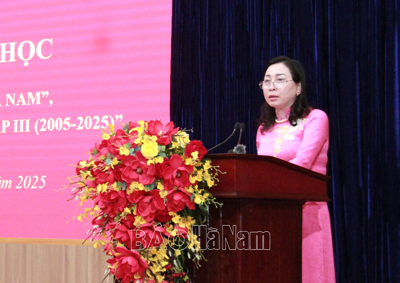 Phát biểu kết luận tại hội thảo, đồng chí Phó Bí thư Thường trực Tỉnh ủy Đinh Thị Lụa nhấn mạnh: Tại hội thảo đã ghi nhận nhiều ý kiến đóng góp quý báu, thể hiện sự tâm huyết, trách nhiệm cao... Nhiều ý kiến, nhất là các đồng chí nguyên Thường trực Tỉnh ủy, Ủy viên BTV Tỉnh ủy, nguyên Ủy viên BTV Tỉnh ủy, Ủy viên BCH Đảng bộ tỉnh, lãnh đạo các sở, ngành đã làm sáng tỏ hơn một số nội dung chủ yếu trong công tác lãnh đạo, chỉ đạo của Đảng bộ tỉnh Hà Nam trong gần 100 năm (1927 - 2025), đặc biệt là giai đoạn 2005 - 2025 và những bài học kinh nghiệm được đúc rút từ thực tế công tác lãnh đạo thực hiện nhiệm vụ chính trị của tỉnh; bổ sung thêm một số sự kiện lịch sử; phân tích, đánh giá làm nổi bật những điểm nhấn, chủ trương, quyết sách, những dấu ấn quan trọng mang tính lịch sử, thể hiện nét riêng, đột phá, những kết quả trong lãnh đạo, chỉ đạo toàn diện của Đảng bộ tỉnh, những kết quả nổi bật trên các lĩnh vực: xây dựng Đảng, xây dựng hệ thống chính trị, phát triển kinh tế - xã hội, quốc phòng, an ninh qua các thời kỳ.