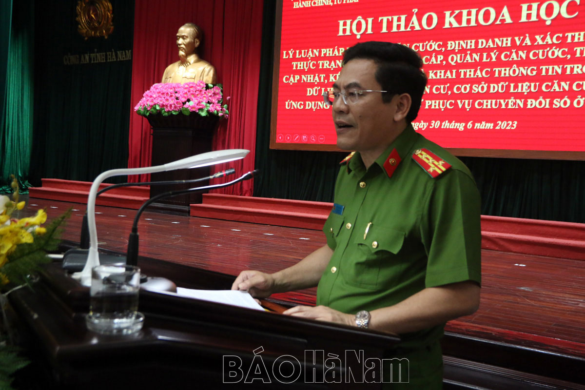 Phát biểu khai mạc Hội thảo,Thiếu tướng Phạm Công Nguyên, Cục trưởng Cục Pháp chế và CCHC, tư pháp (Bộ Công an) nhấn mạnh: Luật Căn cước công dân (CCCD) năm 2014 được Quốc hội khóa XIII thông qua đã đánh dấu bước tiến quan trọng trong công tác lập pháp của nhà nước ta, tạo điều kiện thuận lợi cho việc đi lại, giao dịch của nhân dân, phục vụ yêu cầu nghiệp vụ công an, góp phần phòng ngừa, đấu tranh chống tội phạm và các hành vi vi phạm trật tự, an toàn xã hội. Các Bộ, ngành, Ủy ban nhân dân, công an các đơn vị, địa phương đã tổ chức triển khai thi hành luật nghiêm túc, đạt nhiều kết quả.
