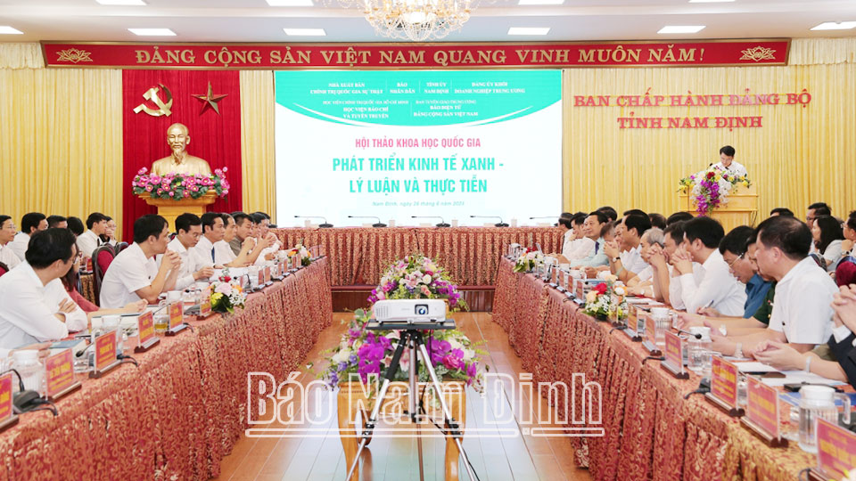 Sáng 26/6, Tỉnh ủy Nam Định, Báo Nhân Dân, Nhà Xuất bản Chính trị quốc gia Sự thật, Đảng ủy Khối Doanh nghiệp Trung ương, Học viện Báo chí và Tuyên truyền, Báo Điện tử Đảng Cộng sản Việt Nam phối hợp tổ chức Hội thảo khoa học quốc gia với chủ đề "Phát triển kinh tế xanh - Lý luận và thực tiễn".