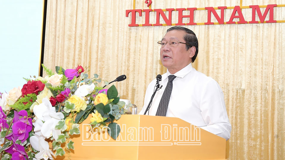 Thay mặt lãnh đạo tỉnh Nam Định, đồng chí Bí thư Tỉnh uỷ trân trọng cảm ơn Báo Nhân Dân, Đảng ủy Khối Doanh nghiệp Trung ương, Nhà Xuất bản Chính trị quốc gia Sự thật, Báo Điện tử Đảng Cộng sản Việt Nam, Học viện Báo chí và Tuyên truyền đã phối hợp với tỉnh tổ chức Hội thảo quan trọng, ý nghĩa này và mong muốn tiếp tục nhận được giúp đỡ của các cơ quan Trung ương, sự chia sẻ, đồng hành của các địa phương, các doanh nghiệp để tỉnh phát triển toàn diện, nhanh, bền vững trong thời gian tới.