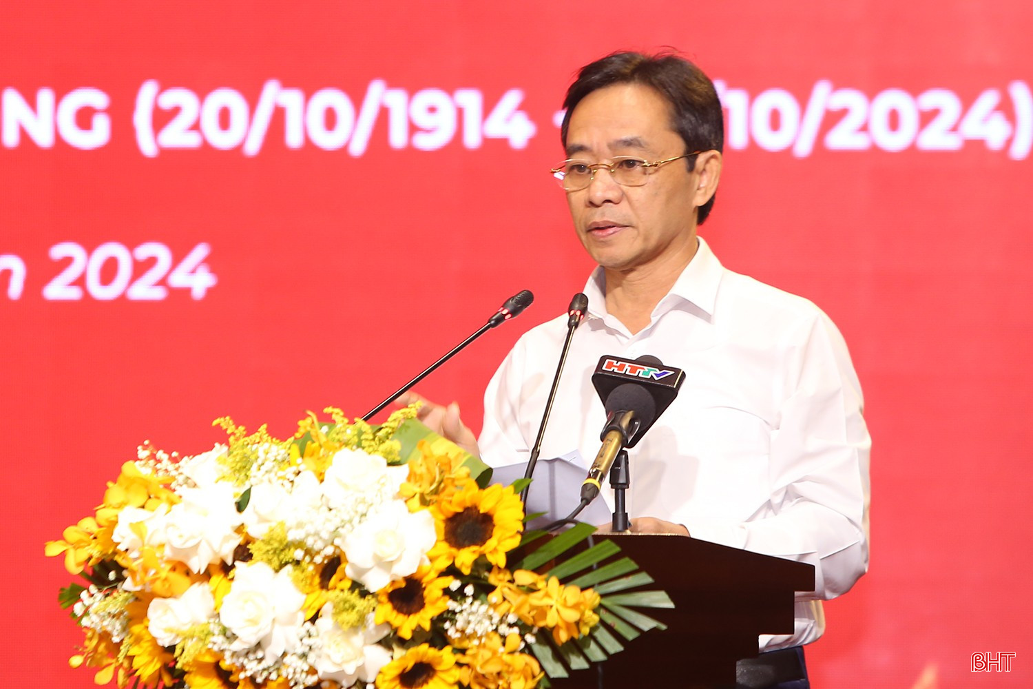 | Phó Bí thư Thường trực Tỉnh ủy Hà Tĩnh Trần Thế Dũng phát biểu đề dẫn hội thảo. |