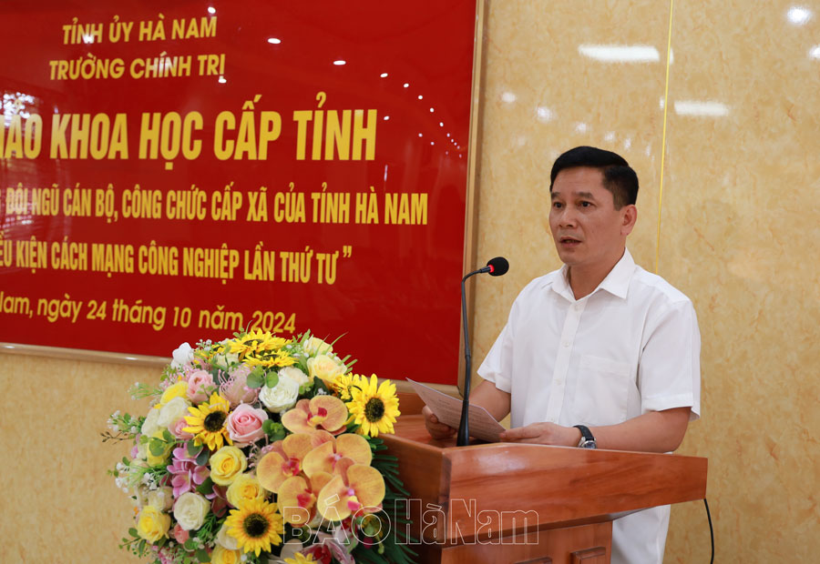 Sáng 24/10, Trường Chính trị tỉnh tổ chức Hội thảo khoa học cấp tỉnh với chủ đề “Xây dựng đội ngũ cán bộ, công chức (CBCC) cấp xã của tỉnh Hà Nam trong điều kiện cách mạng công nghiệp lần thứ 4”. Dự hội thảo có đại diện lãnh đạo một số sở, ban, ngành của tỉnh; Thường trực các huyện, thị ủy; lãnh đạo trung tâm chính trị các huyện, thị xã, thành phố; đại diện cấp ủy một số địa phương, các nhà khoa học và cán bộ, giảng viên Trường Chính trị tỉnh.