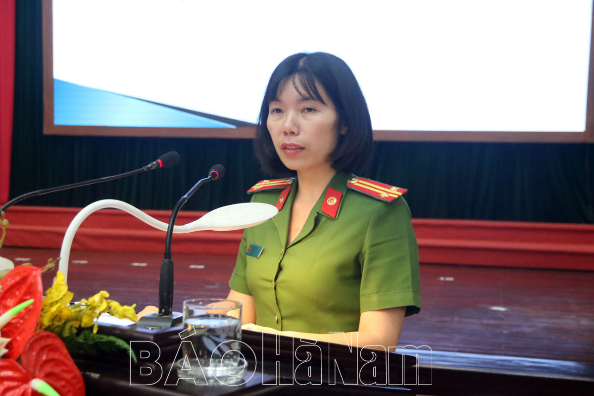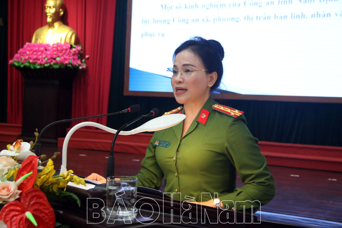Phát biểu chào mừng hội thảo, đồng chí Đinh Thị Lụa, Phó Bí thư Thường trực Tỉnh ủy đã báo cáo khái quát về tình hình phát triển KT-XH của tỉnh thời gian qua, cũng như định hướng trong thời gian tới. Đồng thời khẳng định: thời gian qua, bám sát sự chỉ đạo của Đảng ủy Công an Trung ương, Bộ Công an, Công an tỉnh đã chủ động tham mưu với Tỉnh ủy, HĐND, UBND tỉnh lãnh đạo, chỉ đạo, tổ chức triển khai quyết liệt, hiệu quả toàn diện công tác đảm bảo ANTT, xây dựng lực lượng Công an tỉnh thực sự trong sạch, vững mạnh, chính quy, tinh nhuệ, hiện đại. Đến nay, tỉnh Hà Nam đã thực hiện chủ trương bố trí công an chính quy đảm nhiệm các chức danh tại 100% xã trên địa bàn. Việc bố trí công an xã chính quy đã góp phần đảm bảo tình hình an ninh chính trị, TTATXH ở cơ sở đã có những chuyển biến tích cực, tình hình tội phạm, vi phạm pháp luật về trật tự xã hội giảm rõ rệt.