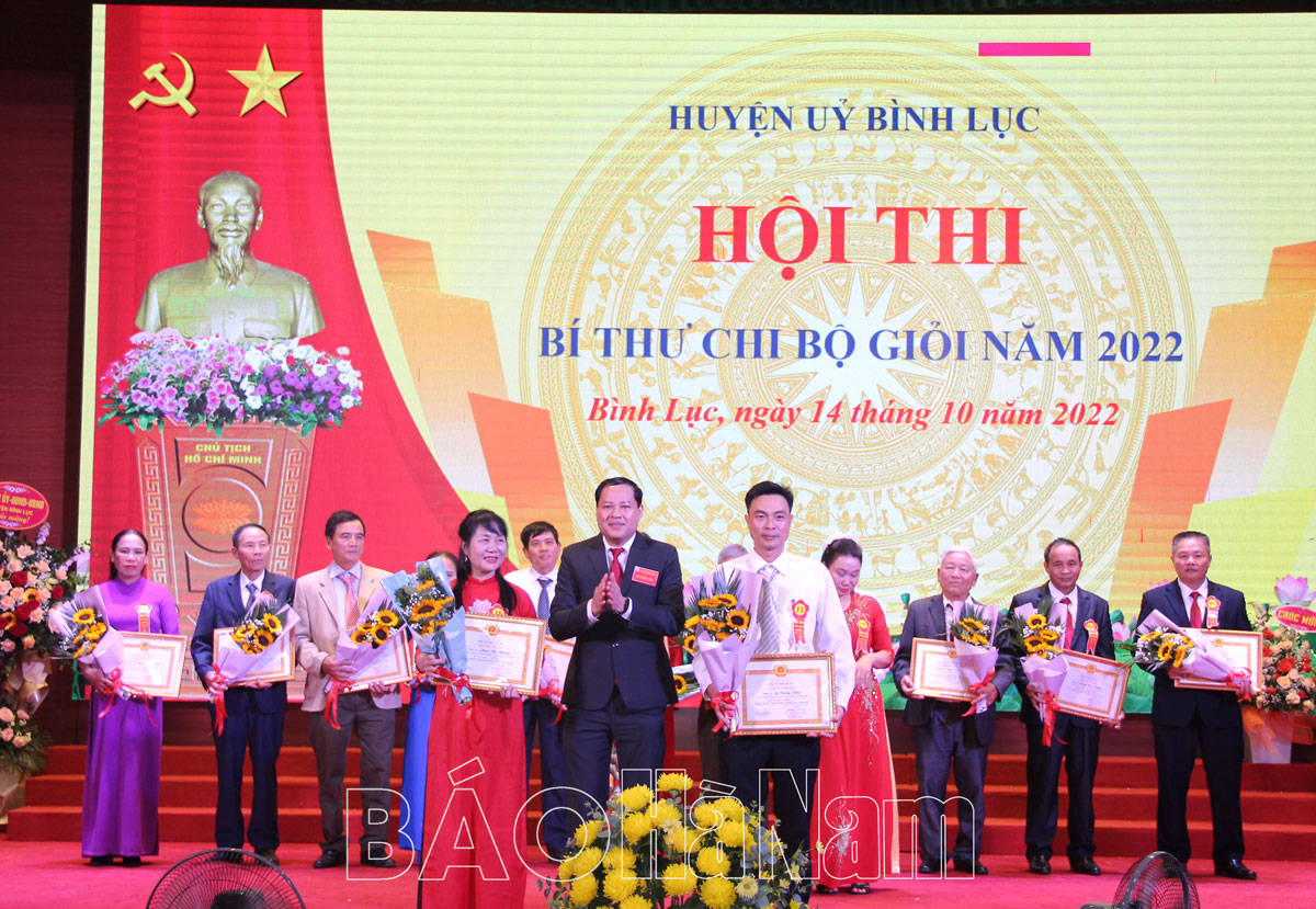 Sáng 14/10, Huyện ủy Bình Lục tổ chức Hội thi Bí thư Chi bộ giỏi năm 2022. Tham gia hội thi gồm 14 thí sinh là các bí thư, phó bí thư chi bộ đã xuất sắc vượt qua các vòng thi chung khảo Bí thư Chi bộ giỏi cấp xã. Đồng chí Nguyễn Thị Liên, Bí thư Chi bộ thôn Hòa Trung, thị trấn Bình Mỹ đã xuất sắc đạt giải Nhất của hội thi.