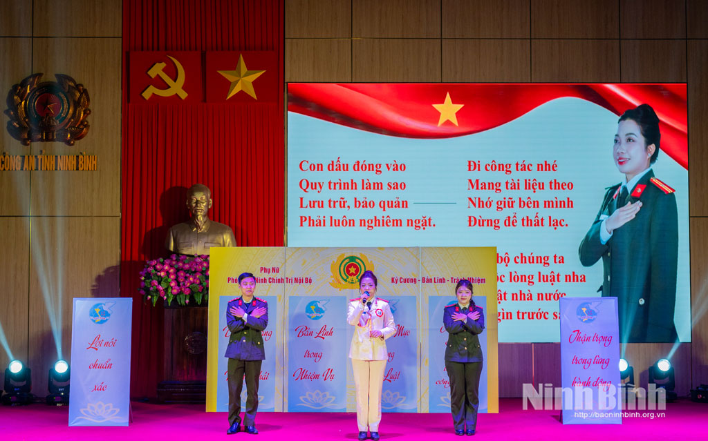 Các tiết mục được đầu tư công phu, chuẩn bị kỹ lưỡng với đa dạng thể loại như biểu diễn võ thuật, hát xẩm, ngâm thơ, tiểu phẩm, kể chuyện… mang đến cho hội thi không khí sôi động, thể hiện trí tuệ, tài năng, phong thái của các thí sinh, góp phần tô thắm hình ảnh nữ chiến sĩ Công an Ninh Bình vừa bản lĩnh trong công tác, vừa duyên dáng, tự tin trong cuộc sống.